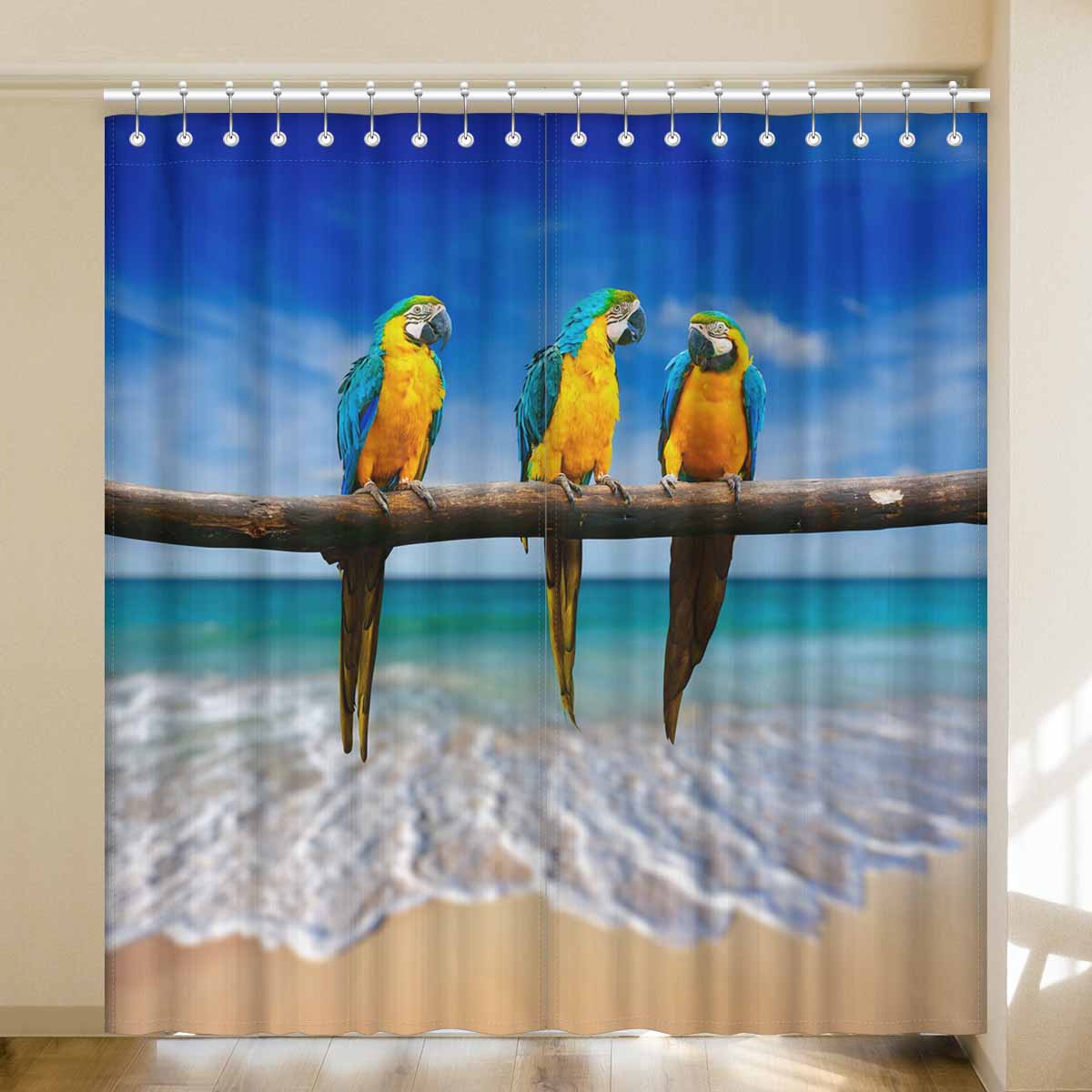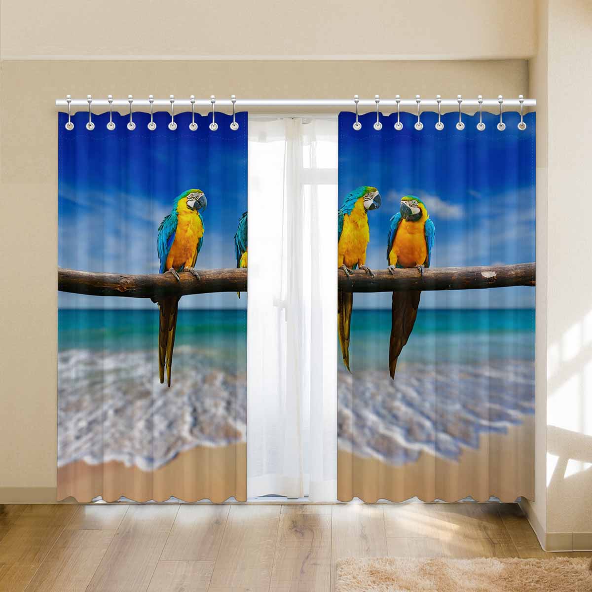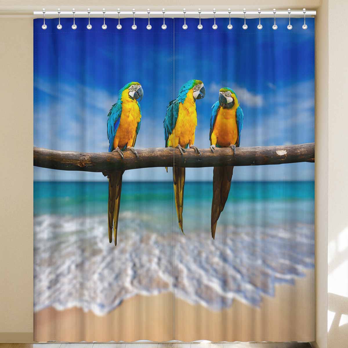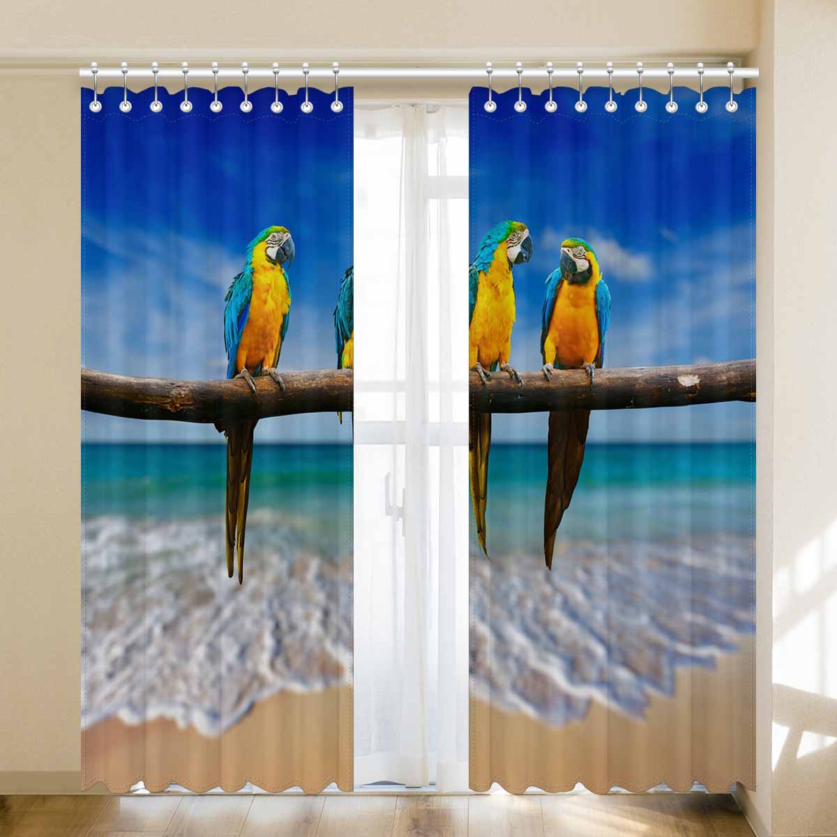 Window Curtains print Macaw on beach