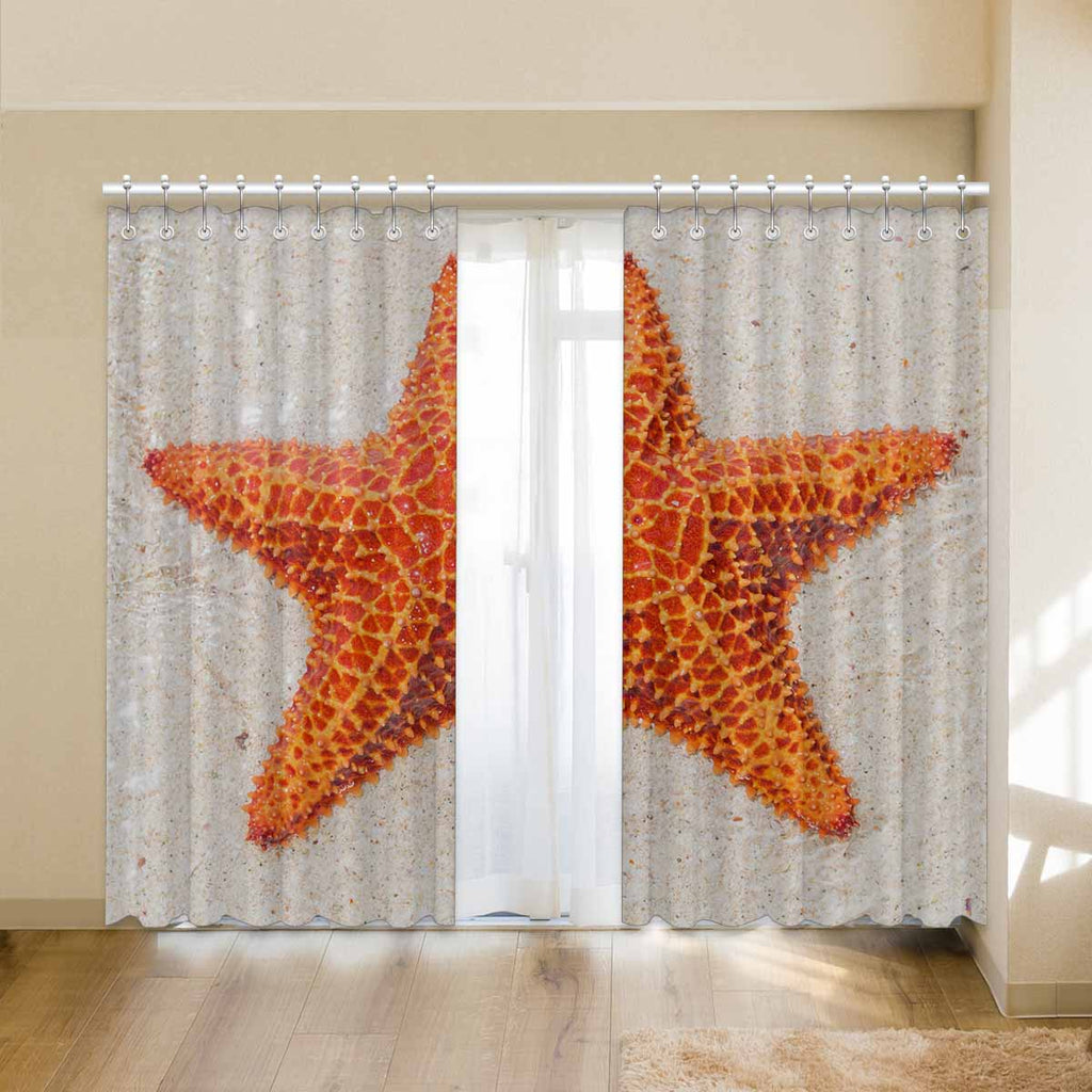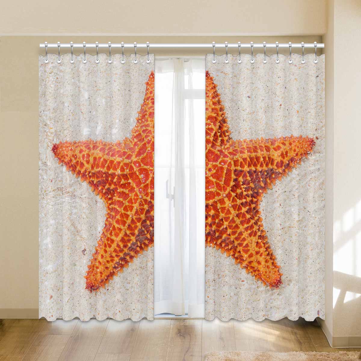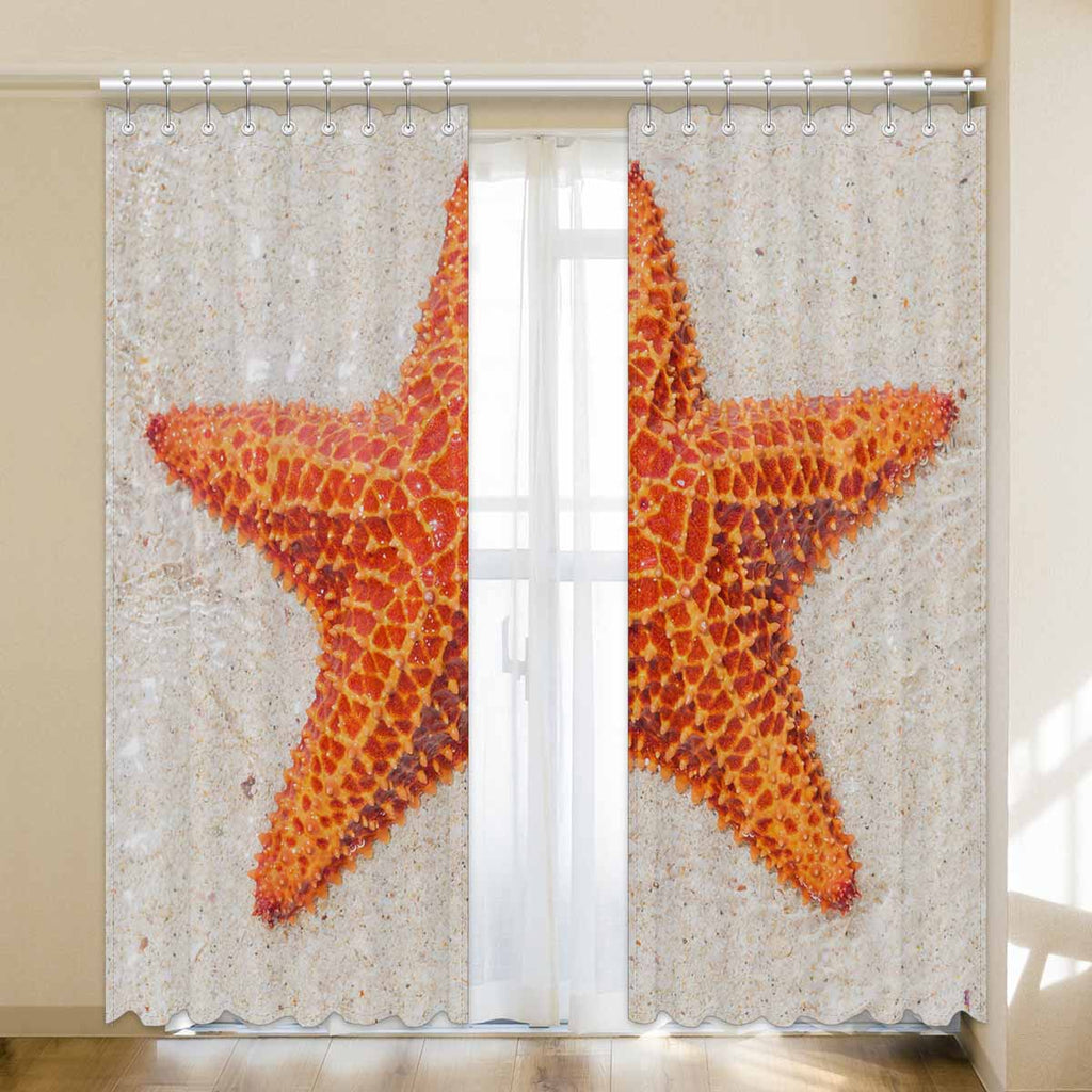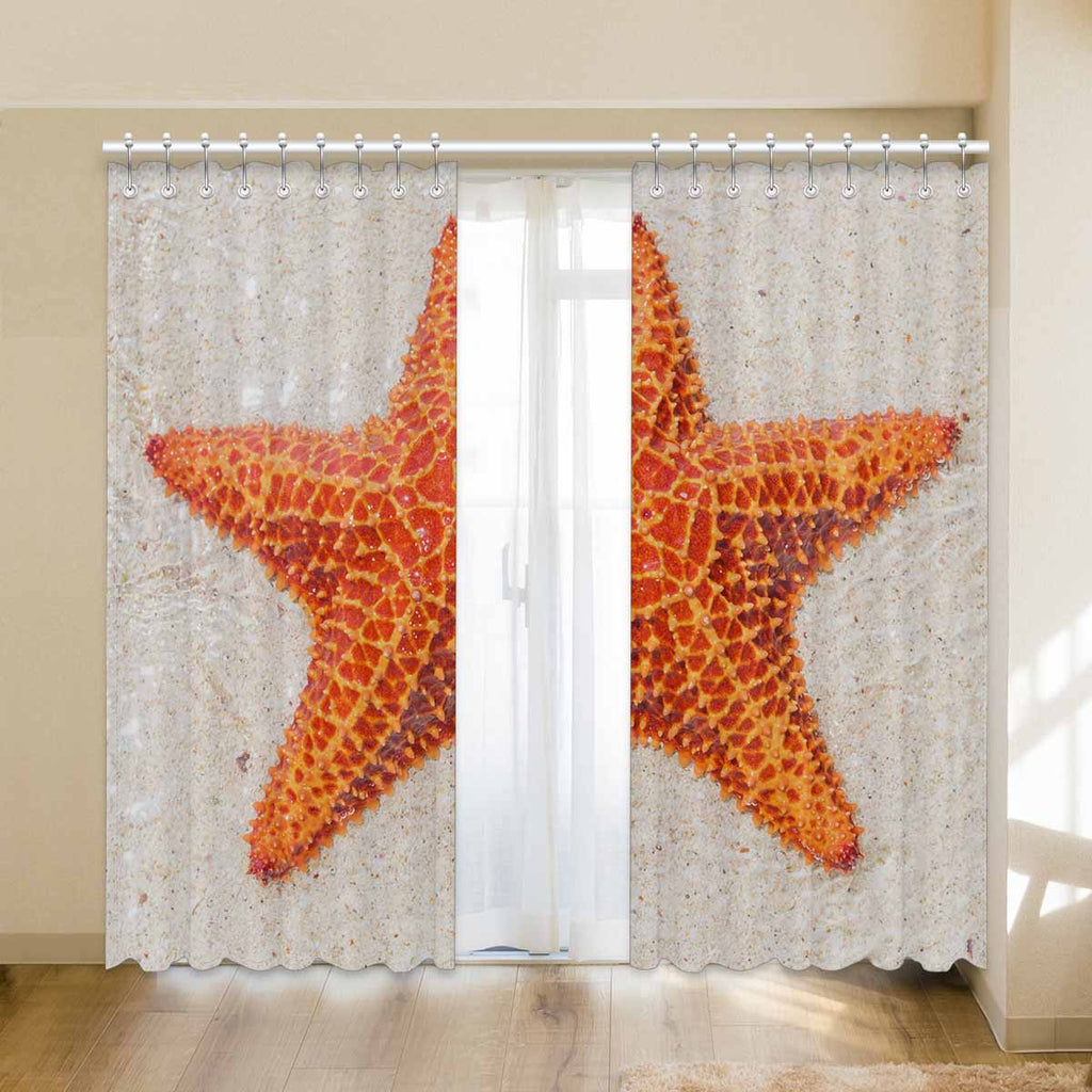 Window Curtains print sea star on beach
