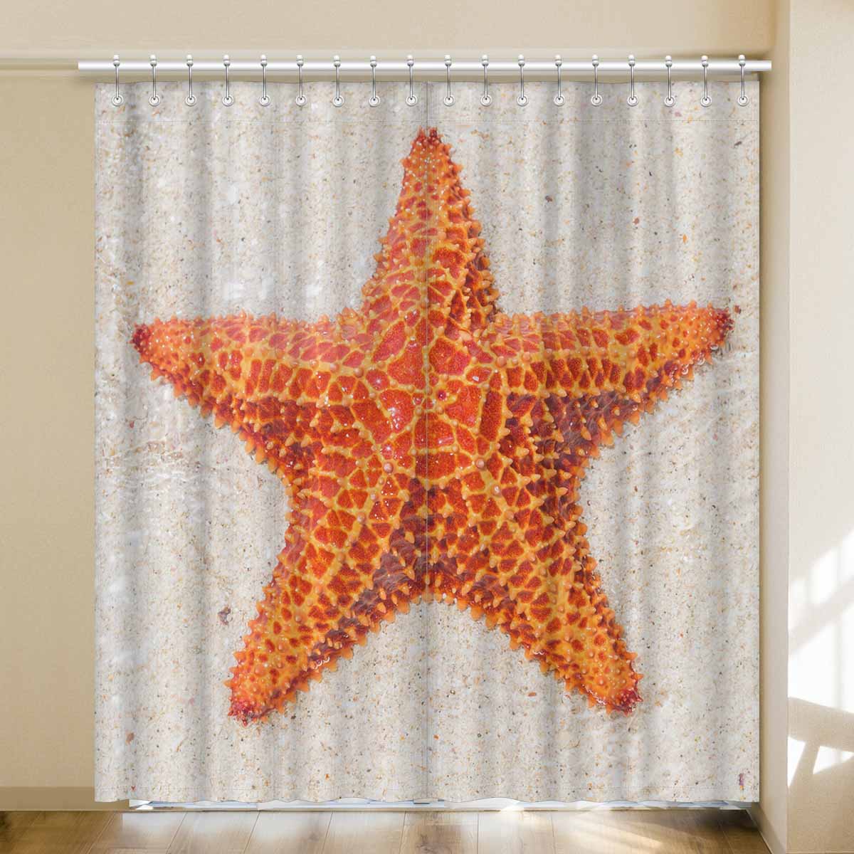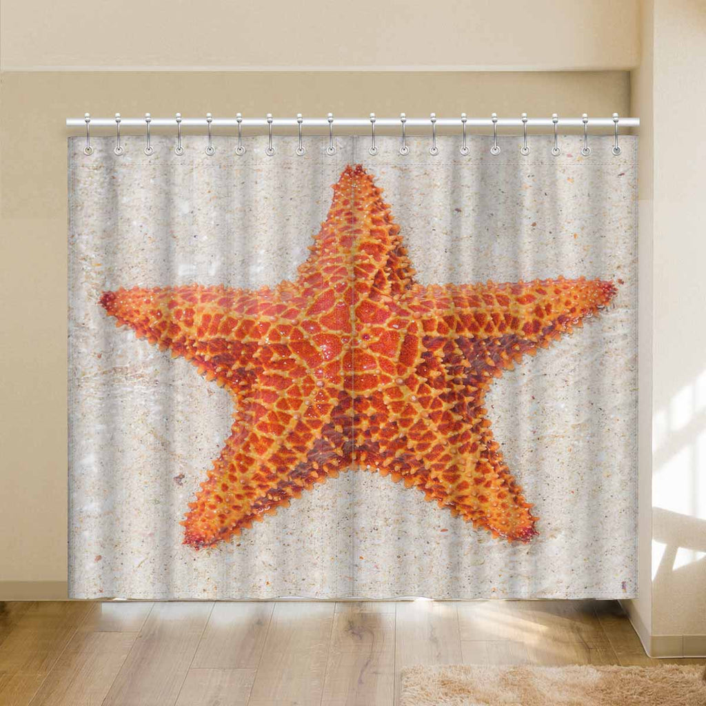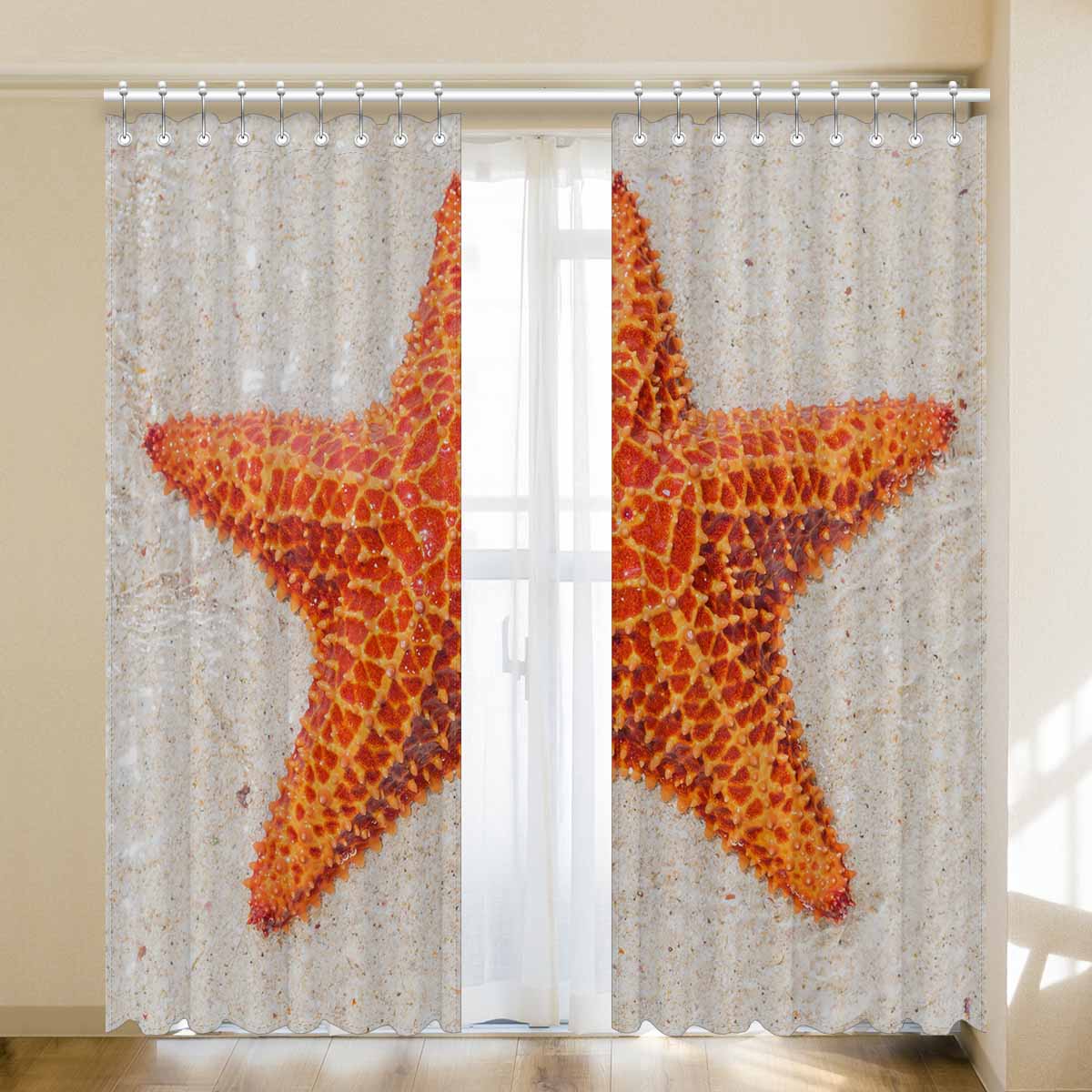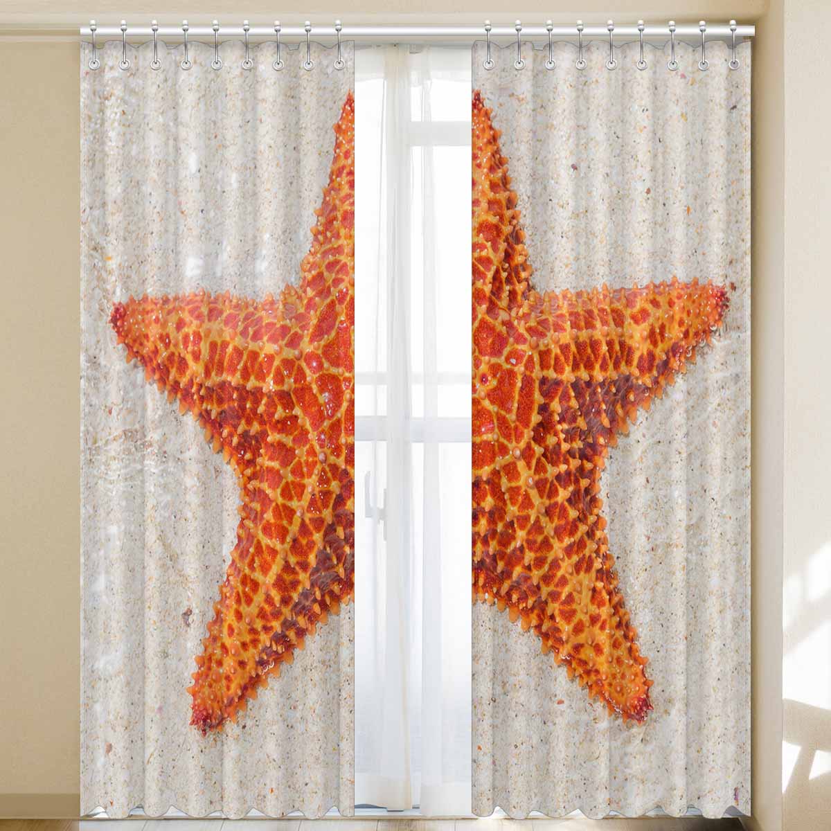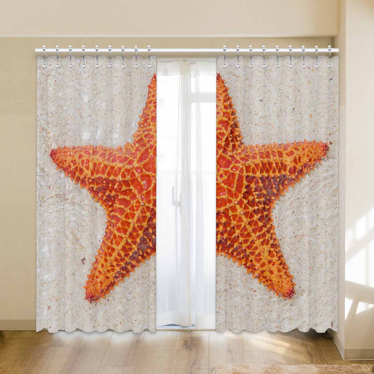 Window Curtains print sea star on beach
