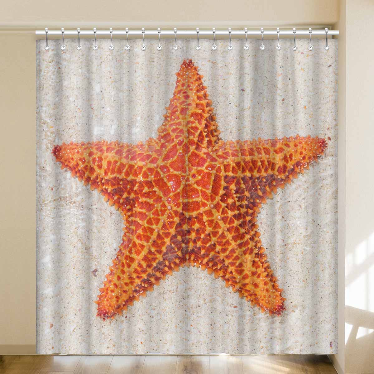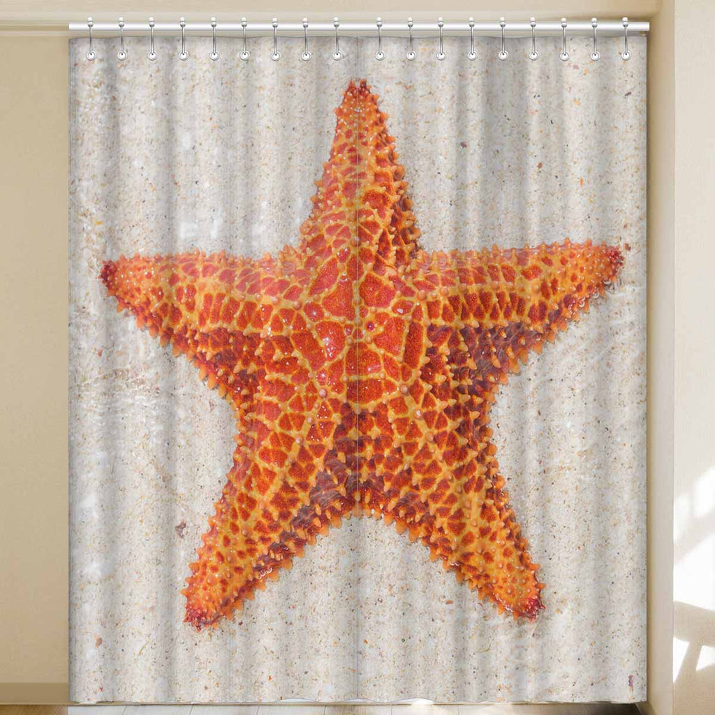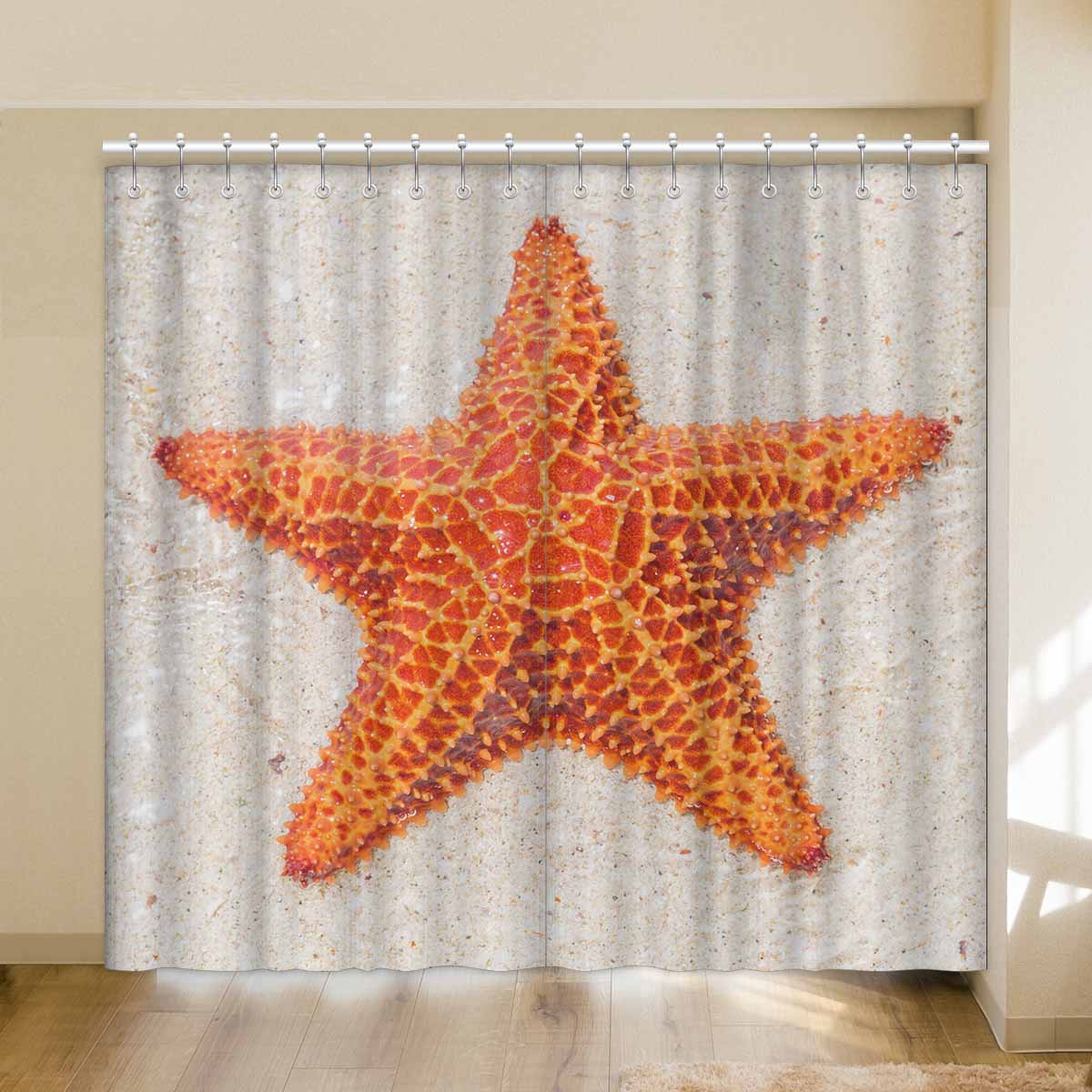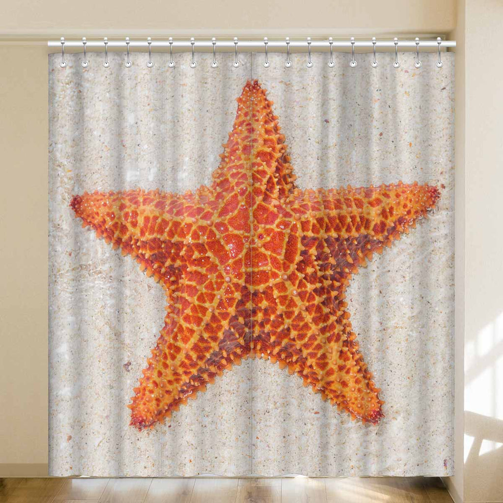 Window Curtains print sea star on beach