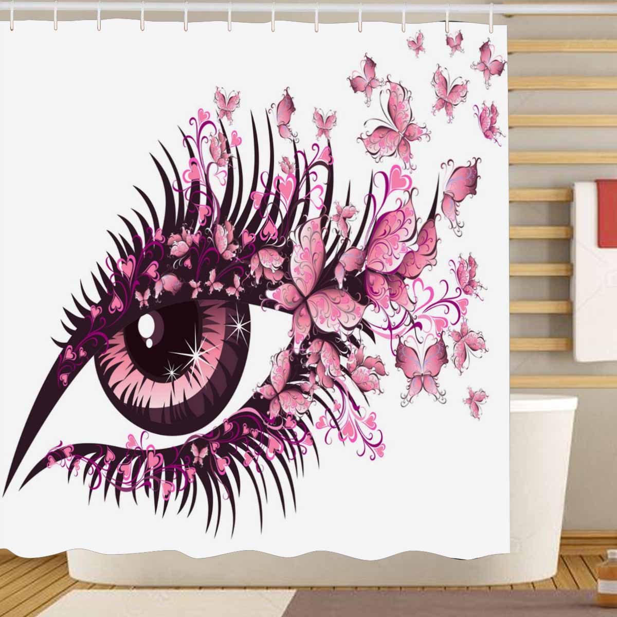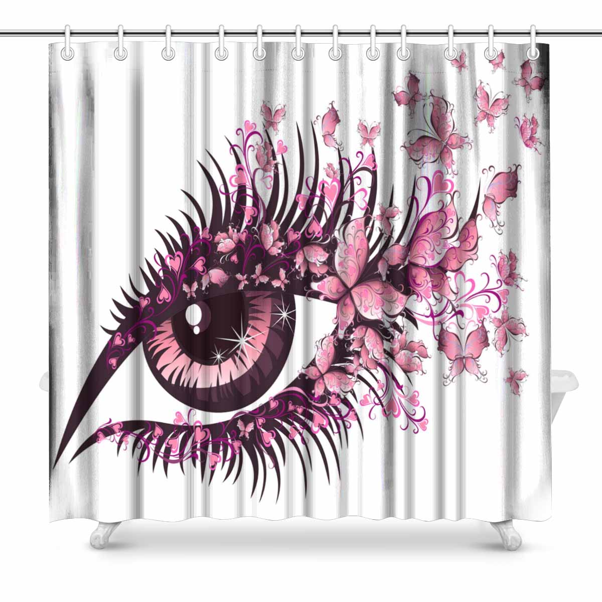 Shower Curtains print with Beautiful female eye with butterflies