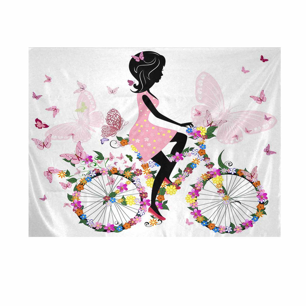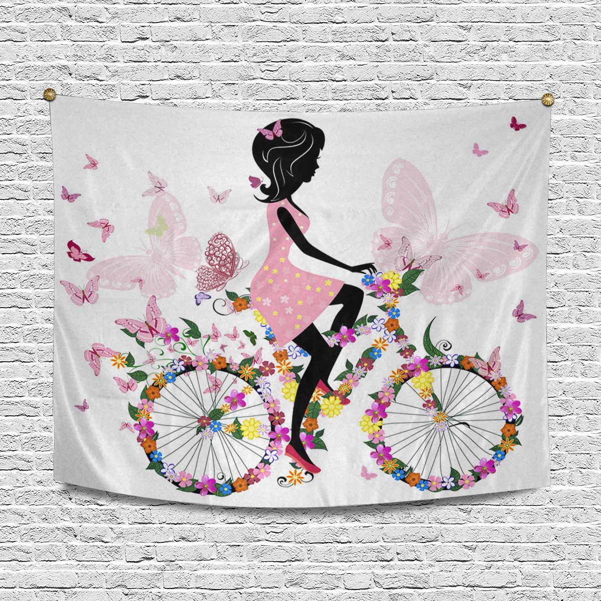 Wall Tapestries printed Girl on a bicycle with romantic butterflies