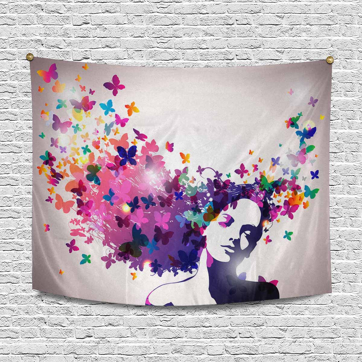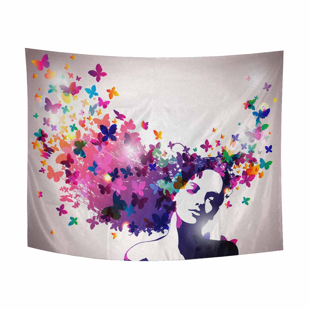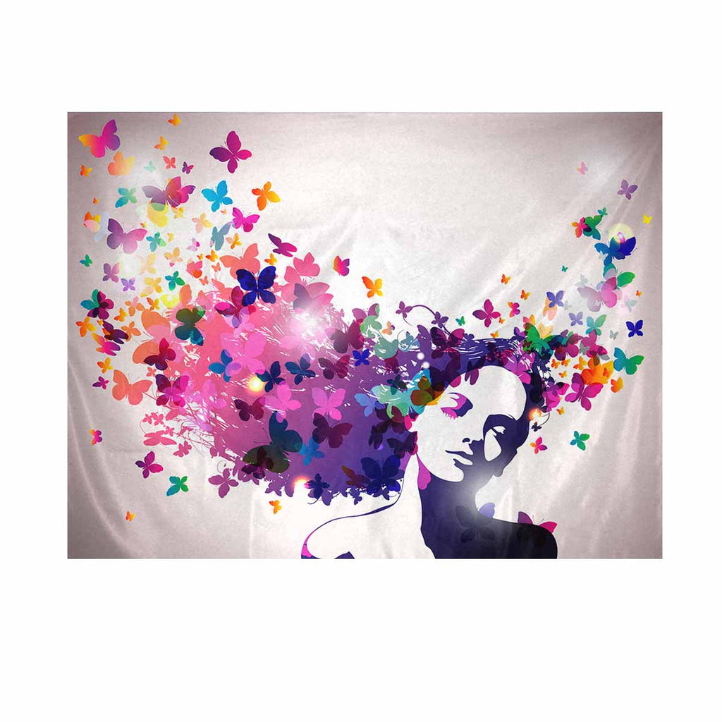 Wall Tapestries printed Portrait of Woman with butterflies flying from her hair