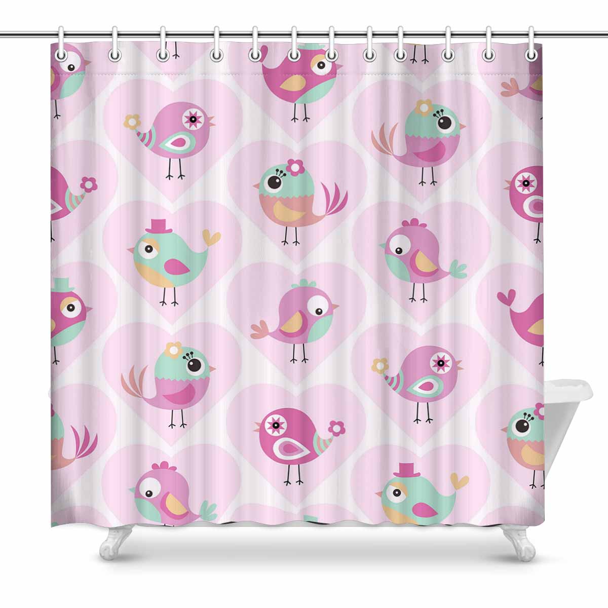 Themed for Kids Shower Curtains print with Cartoon birds pattern