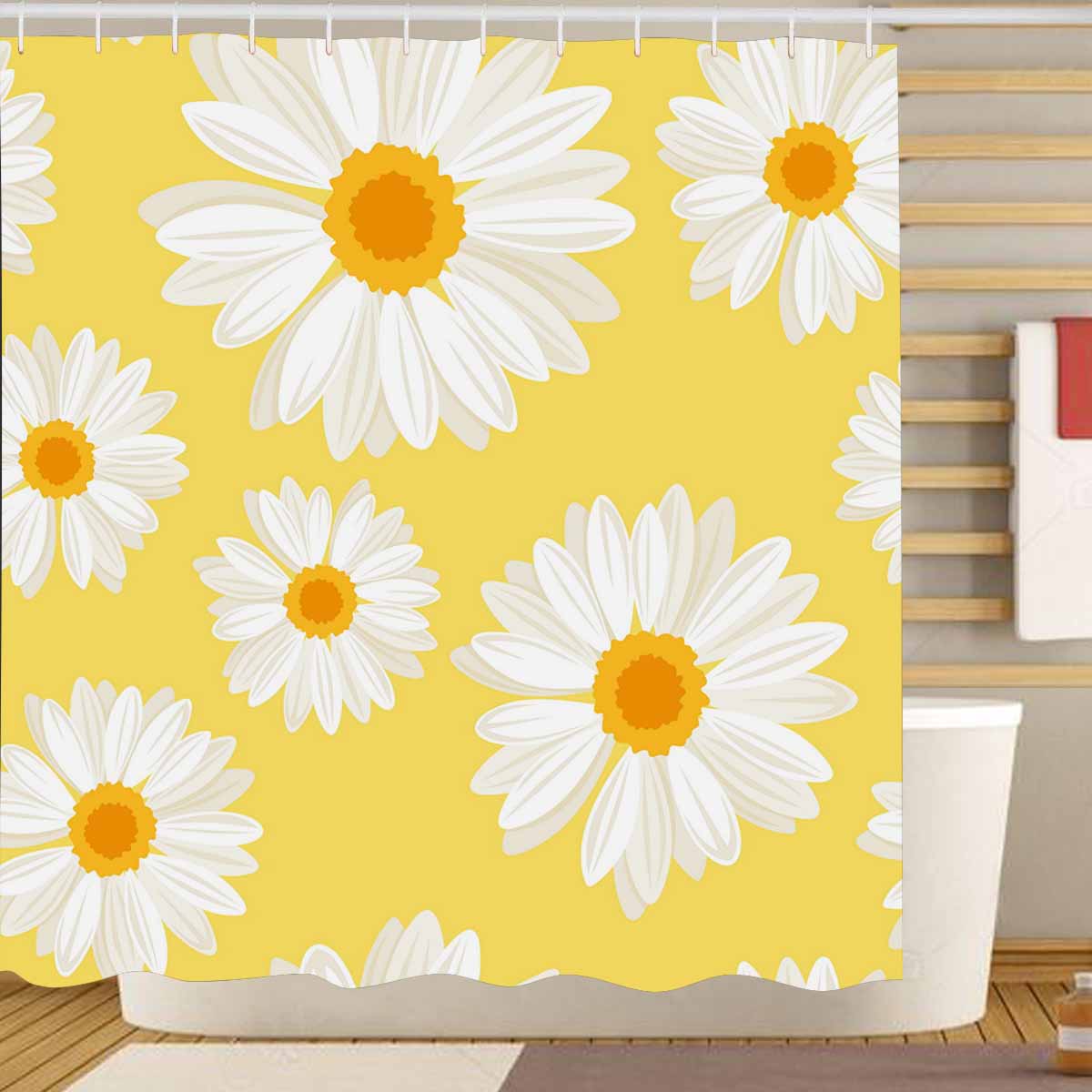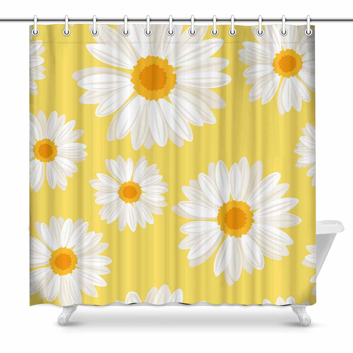 Themed for Kids Shower Curtains print with daisy flowers on yellow