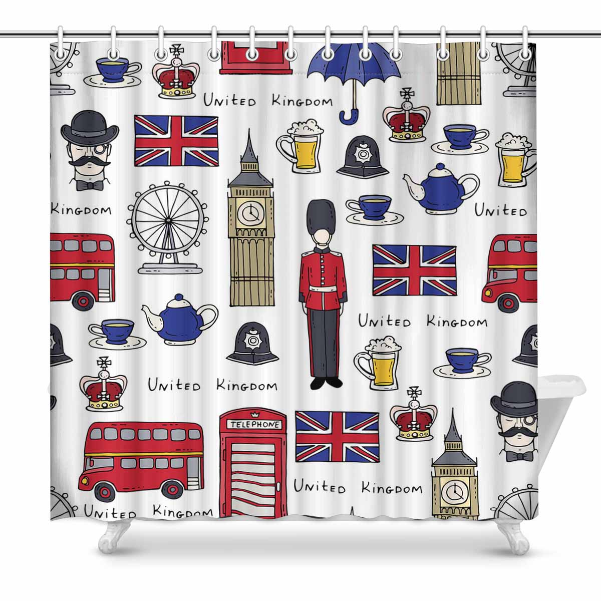 Themed for Kids Shower Curtains print with the theme of United Kingdom