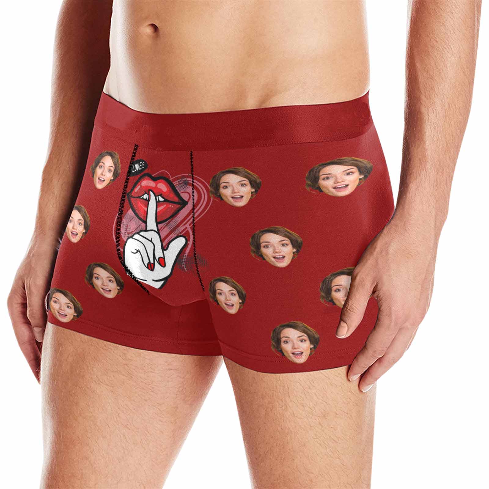 Customization Method: This is a personalized photo men's boxer briefs. Just Click "UPLOAD PHOTO" button upload photo of your face and our team of designers will do all the hard work. They will place face in a repeating pattern so there is no need to upload multiple images.