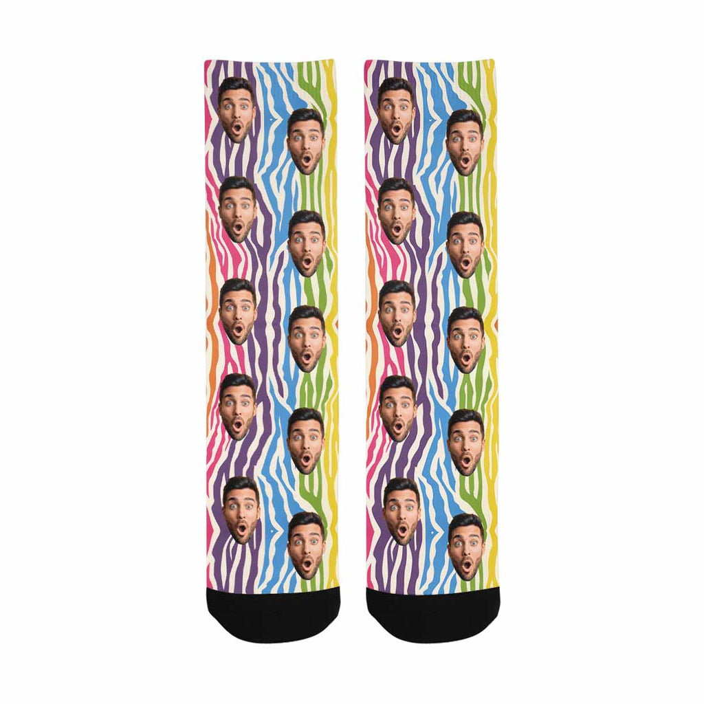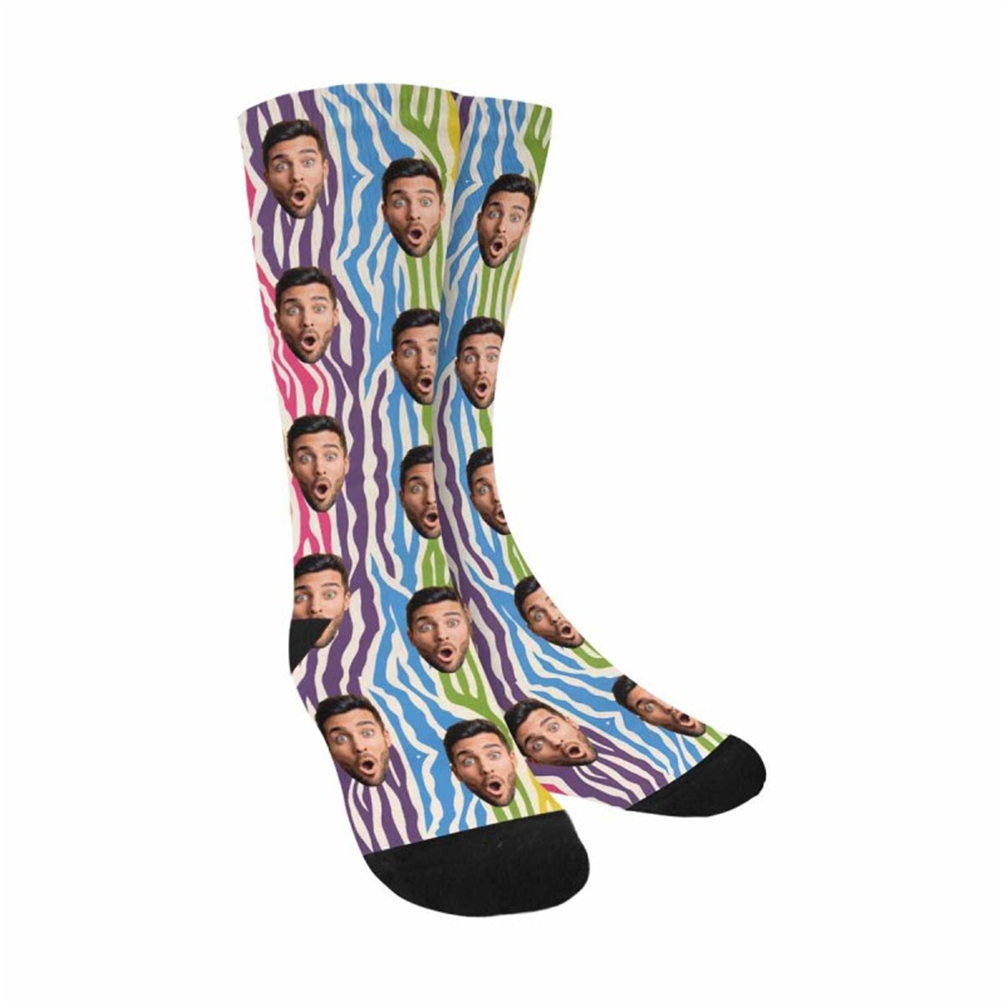 Custom Funny Face Sock Personalized Zebra Sock with Photo or Text for Couples Gifts Women Men Dad Soft Picture Socks