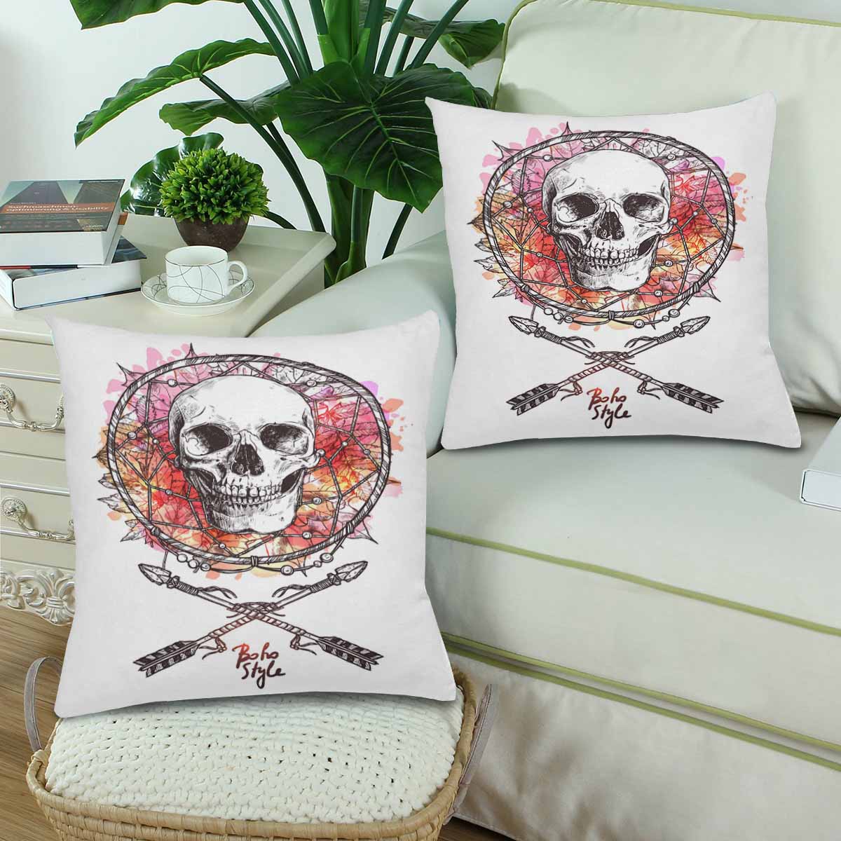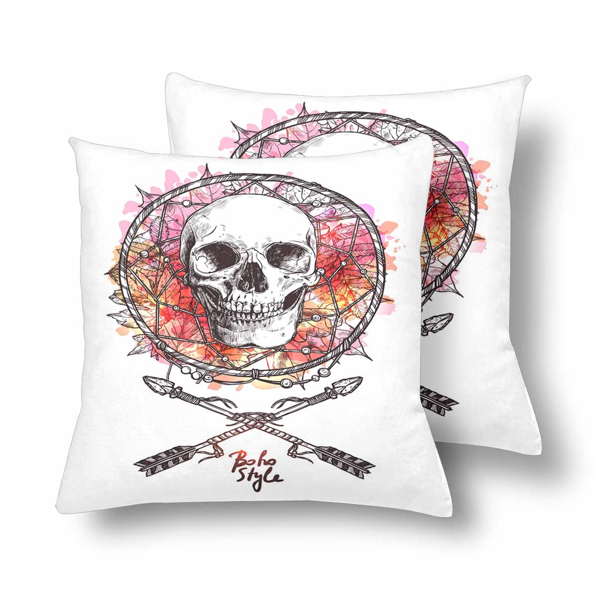 Ethnic themed Pillow Cases printed with Boho Sketch of Human Skull