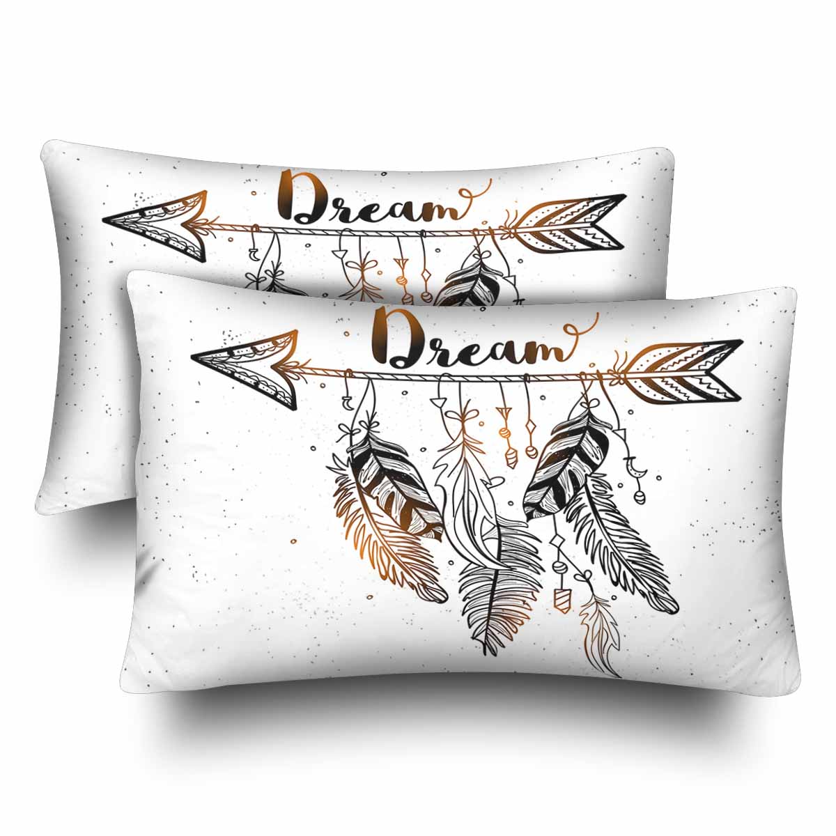 Ethnic themed Rectangle Pillow Cases printed dreamcatcher with arrow and feathers