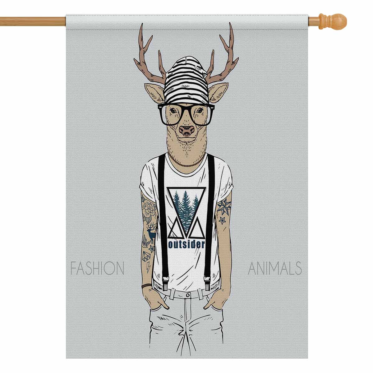 Garden Flags printed animals themed with deer dressed up in t-shirt with quote