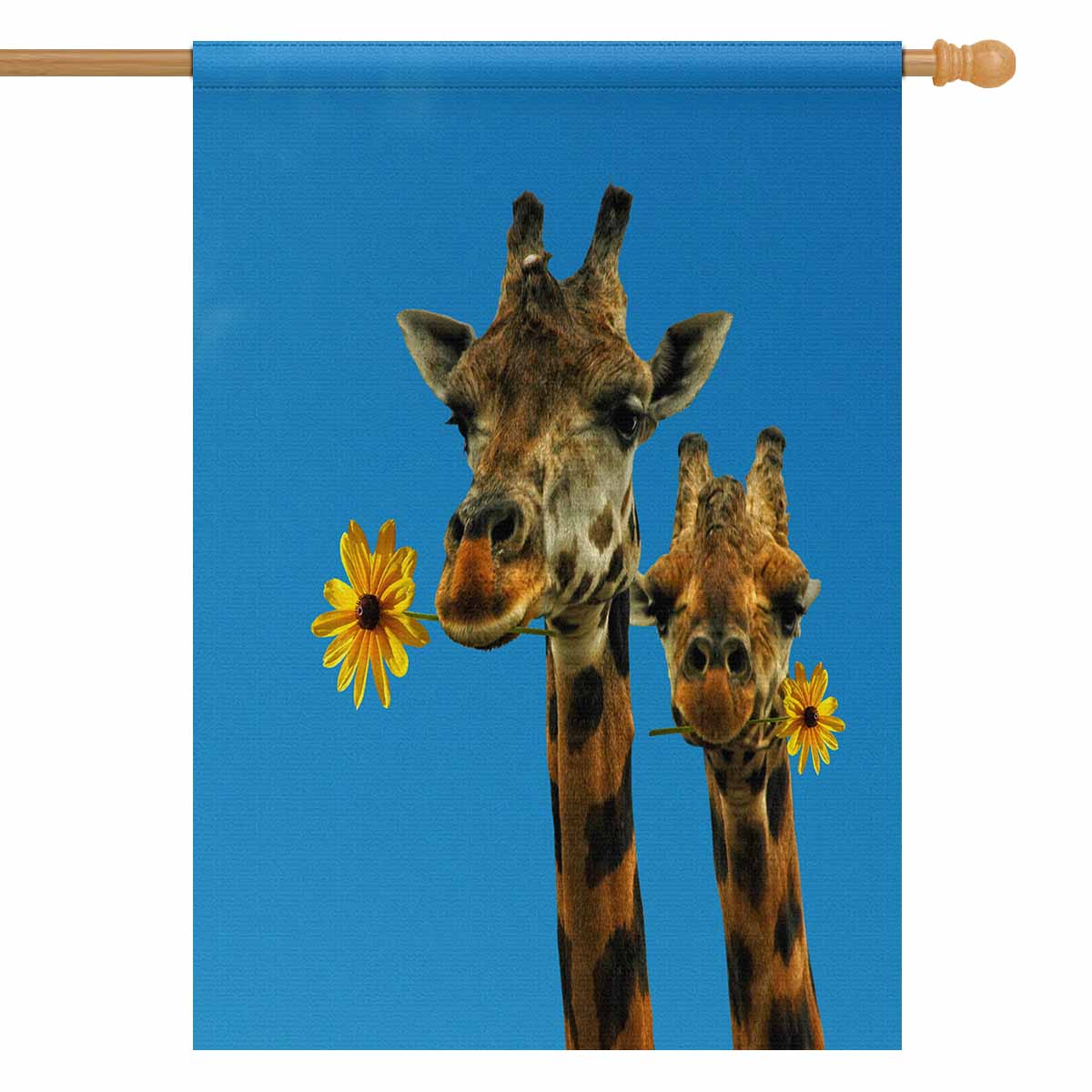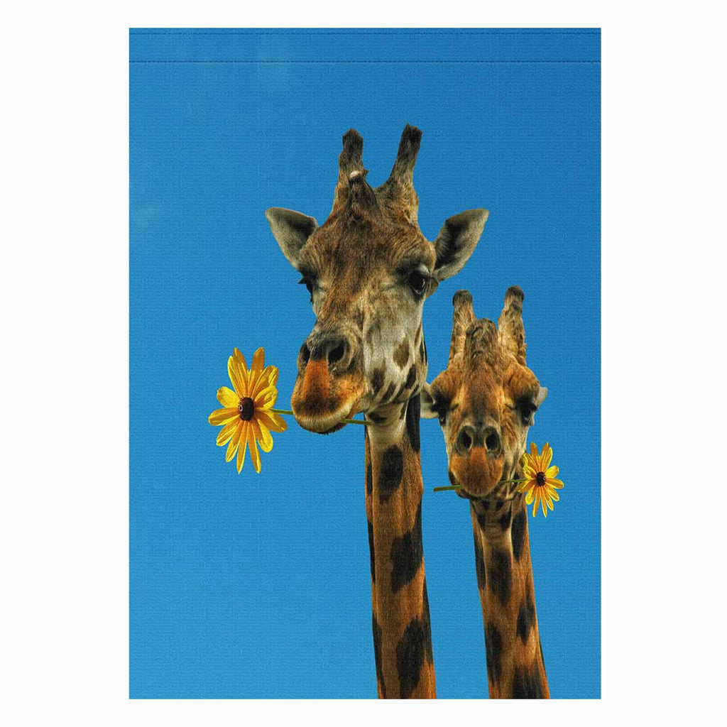 Garden Flags printed animals themed with Two lovely giraffes on a nice blue day