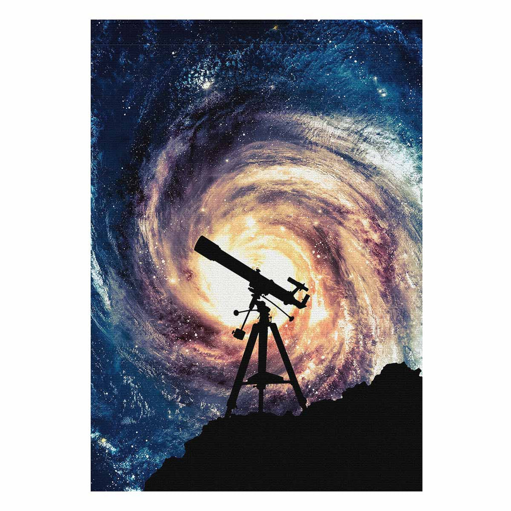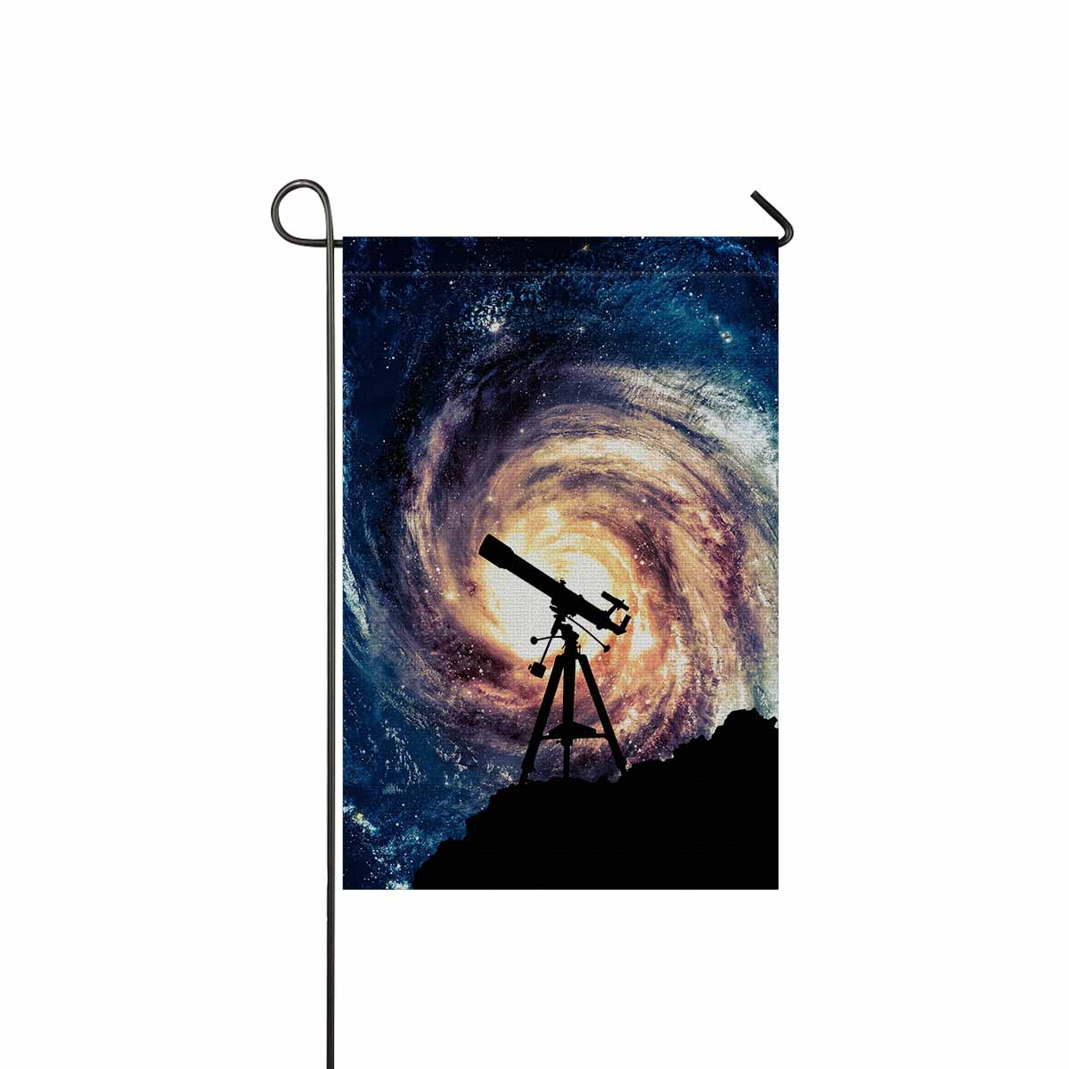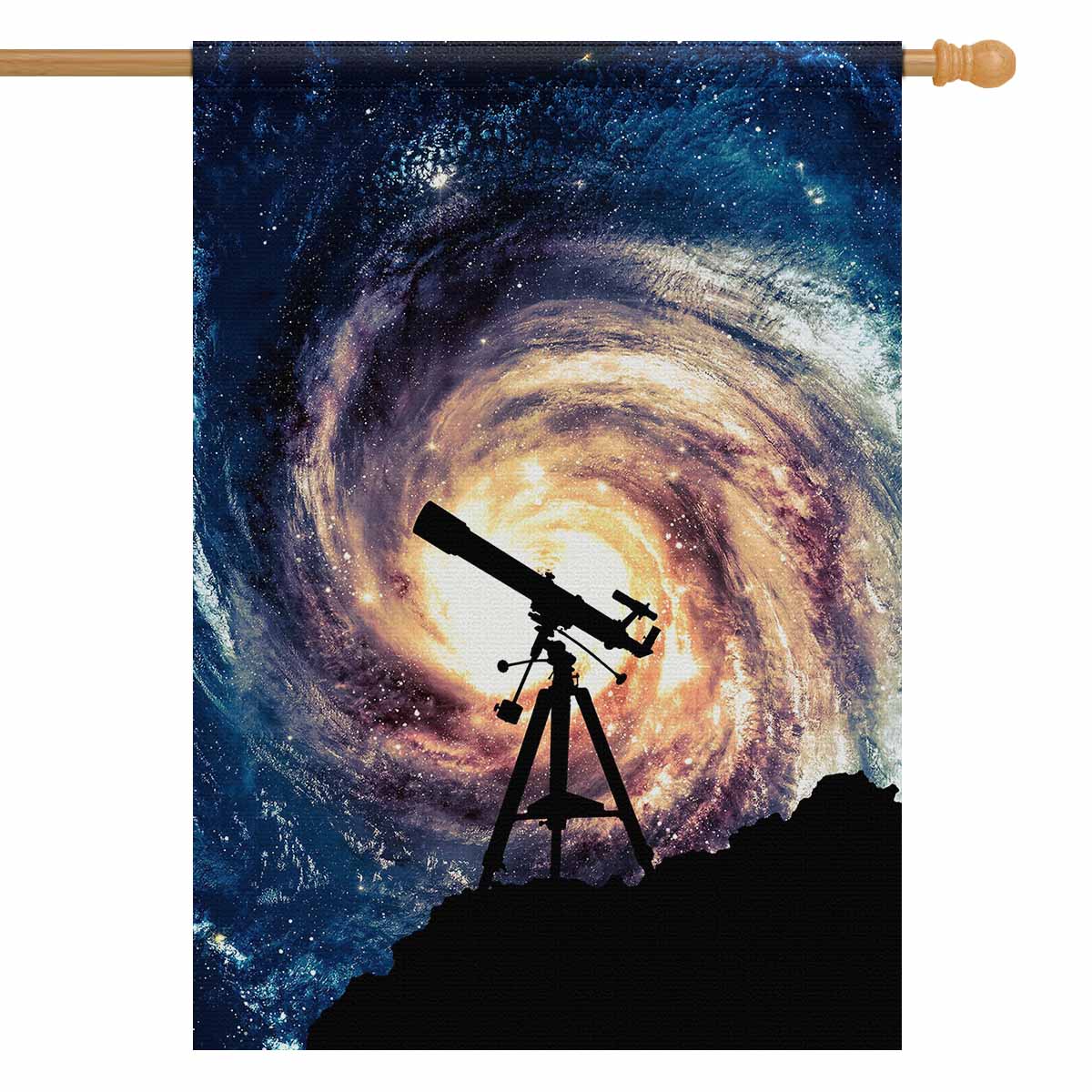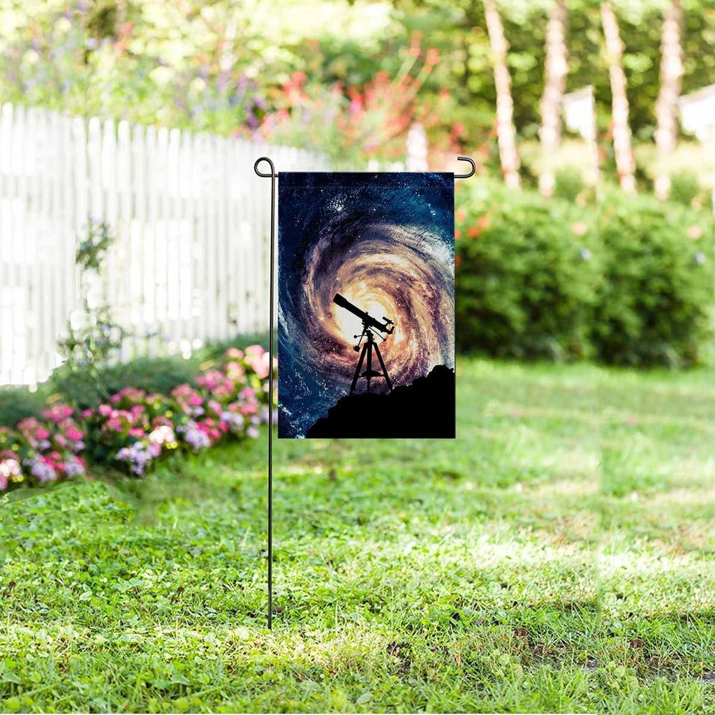 Garden Flags printed galaxy themed with Silhouette of Telescope