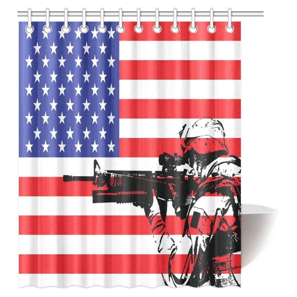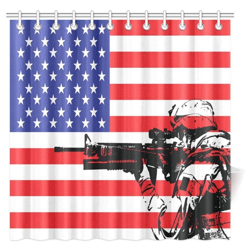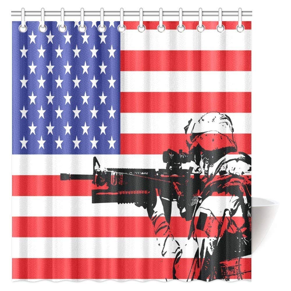 American Flag Themed Monogram USA Military Soldier with M16 Rifle Sketchy Image Shower Curtain