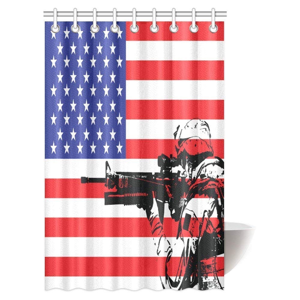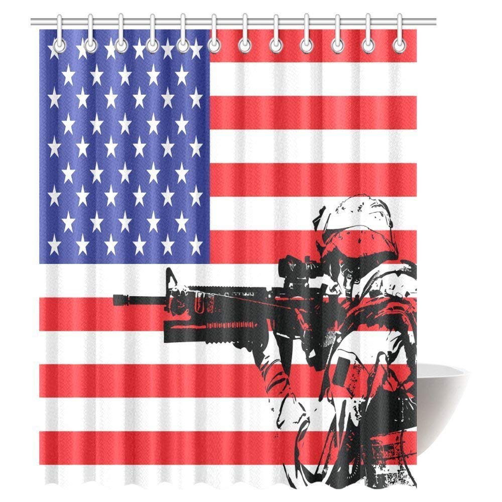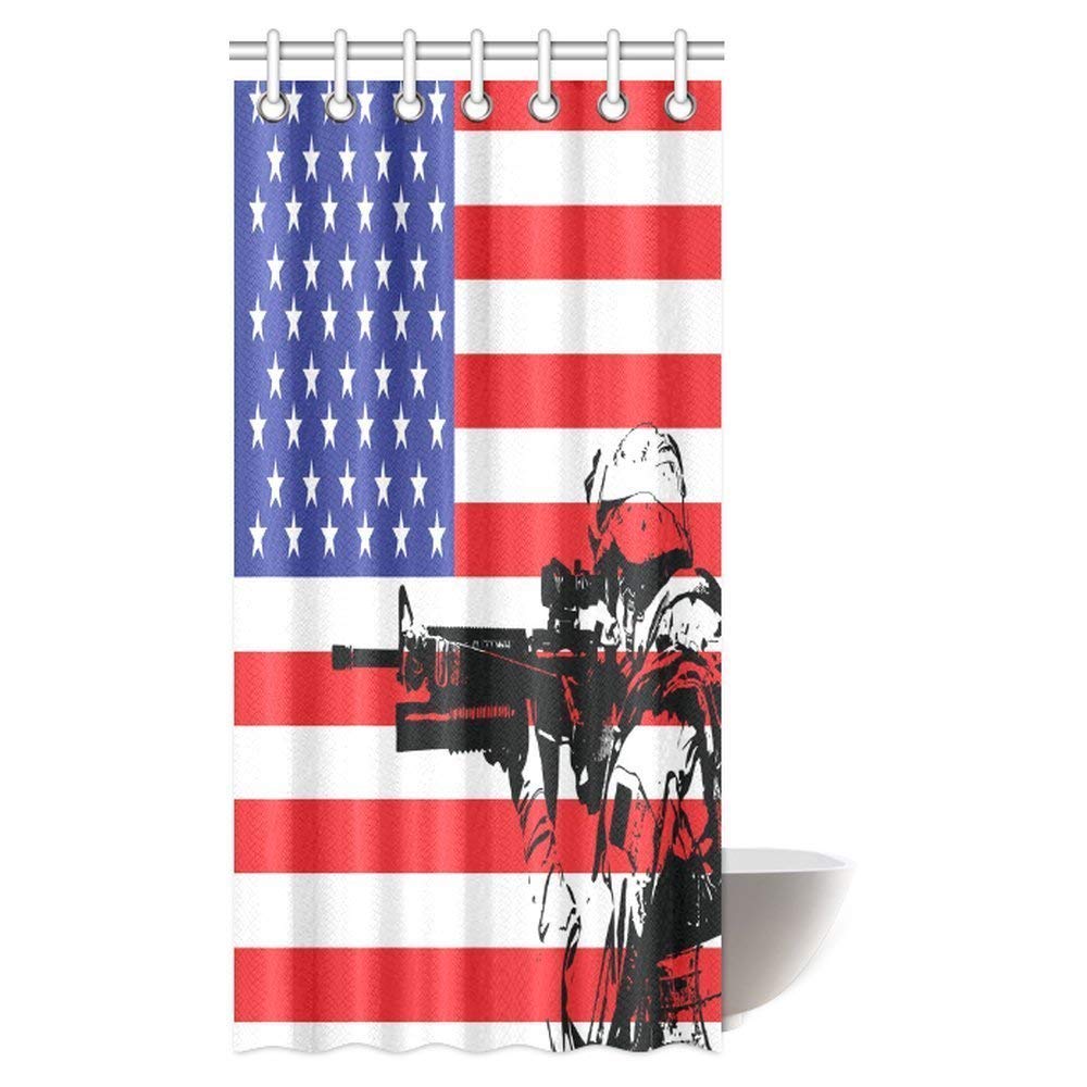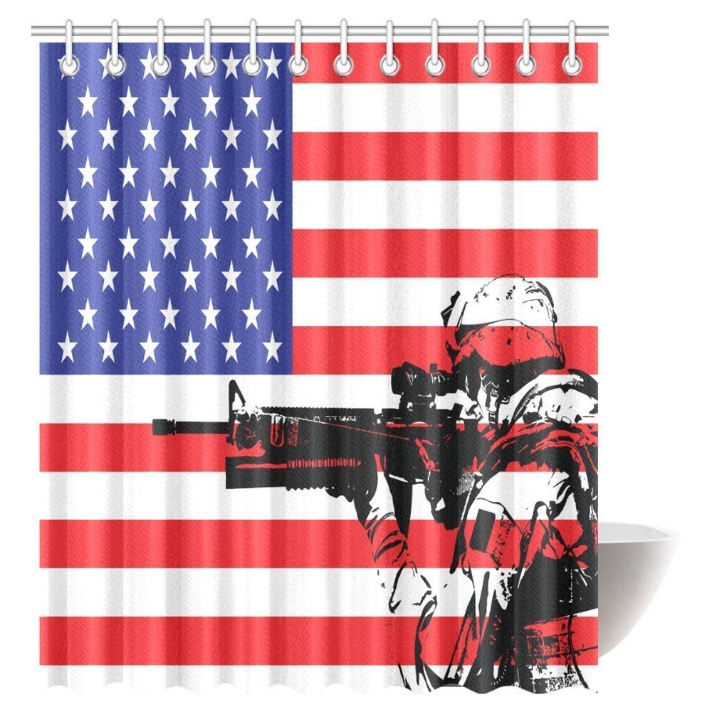 American Flag Themed Monogram USA Military Soldier with M16 Rifle Sketchy Image Shower Curtain