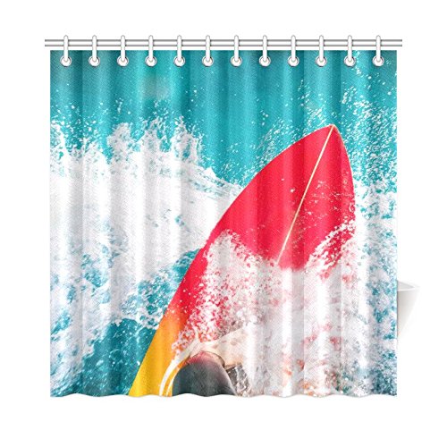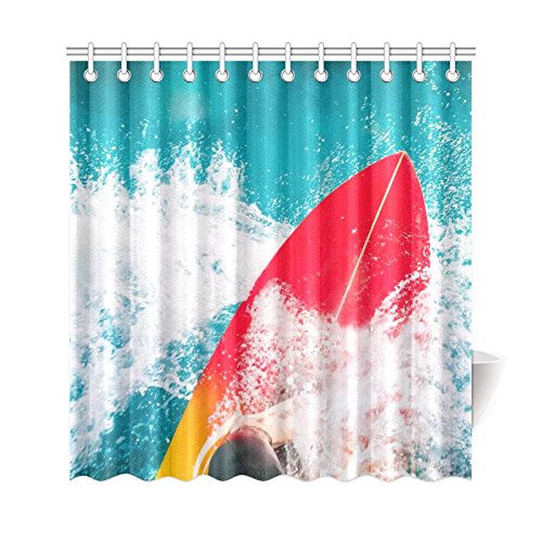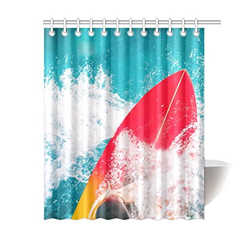 Blue Sea Ocean Home Bath Decor, Red Surfboard Polyester Fabric Shower Curtain Bathroom Sets