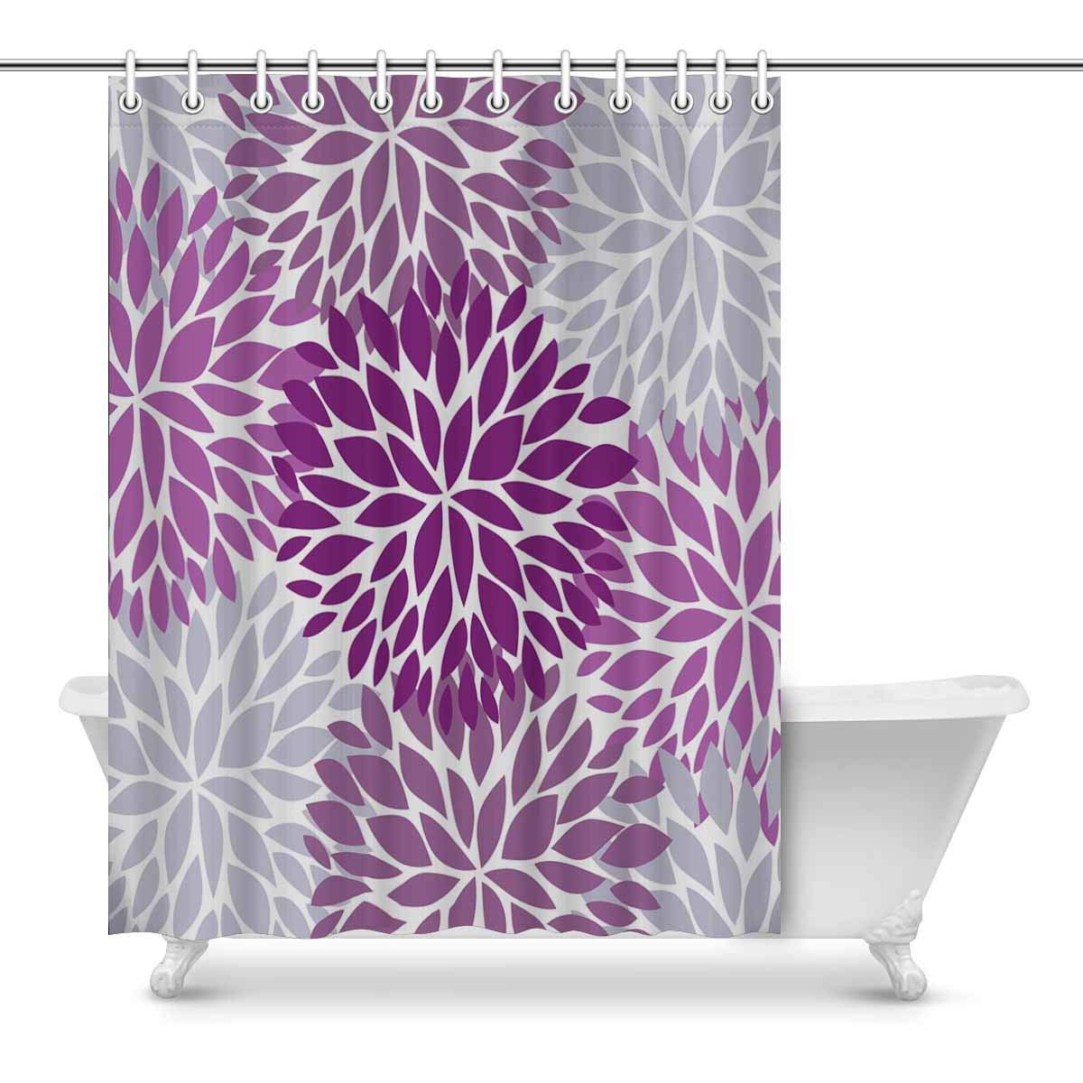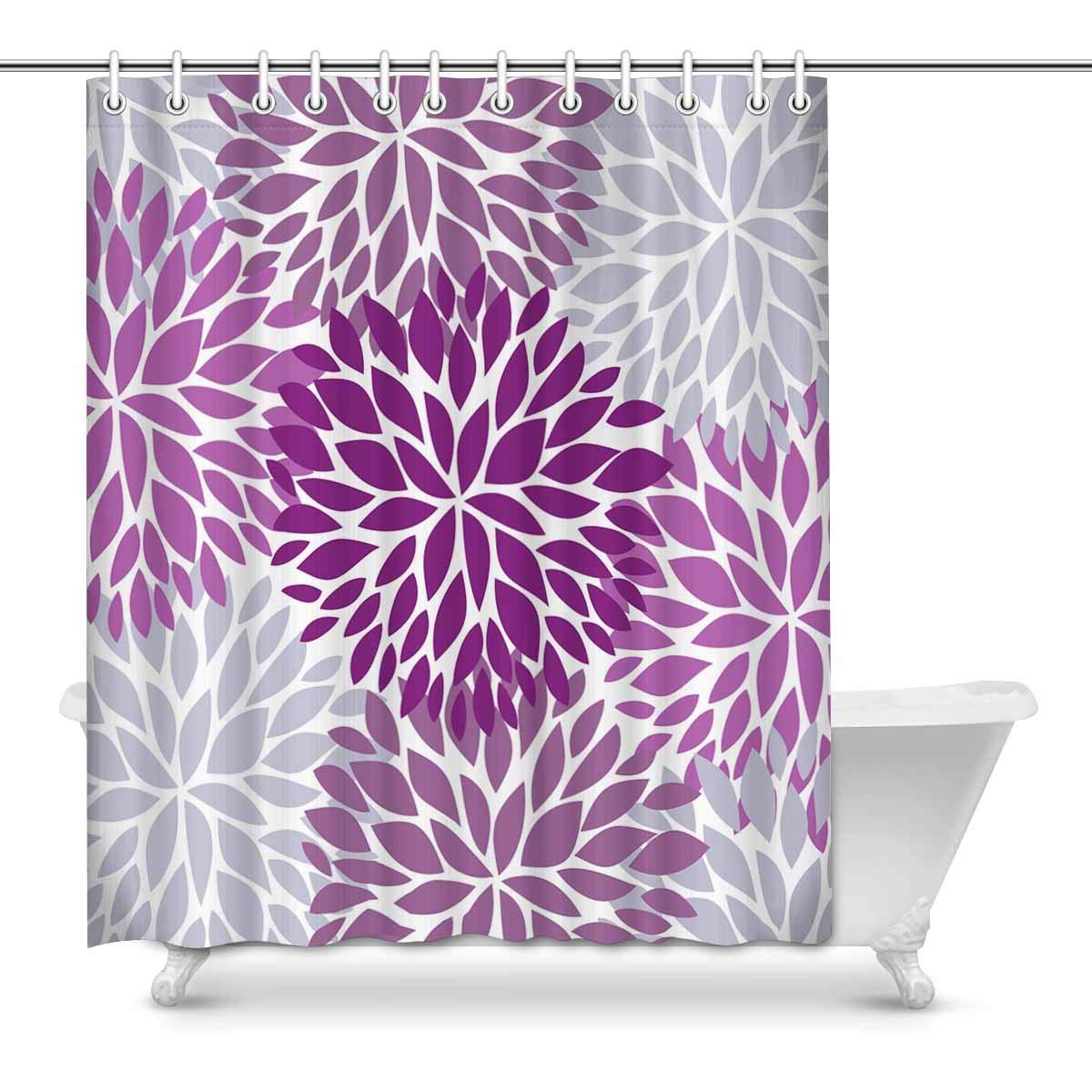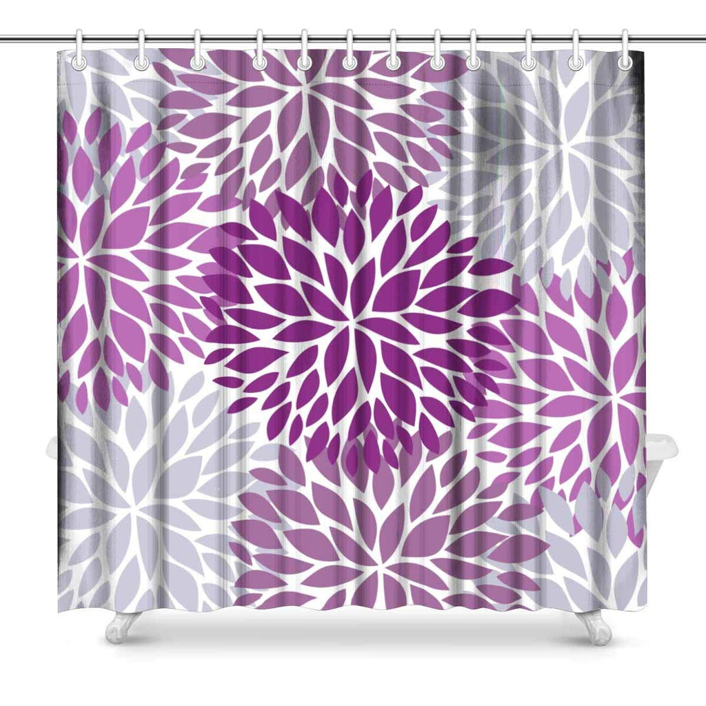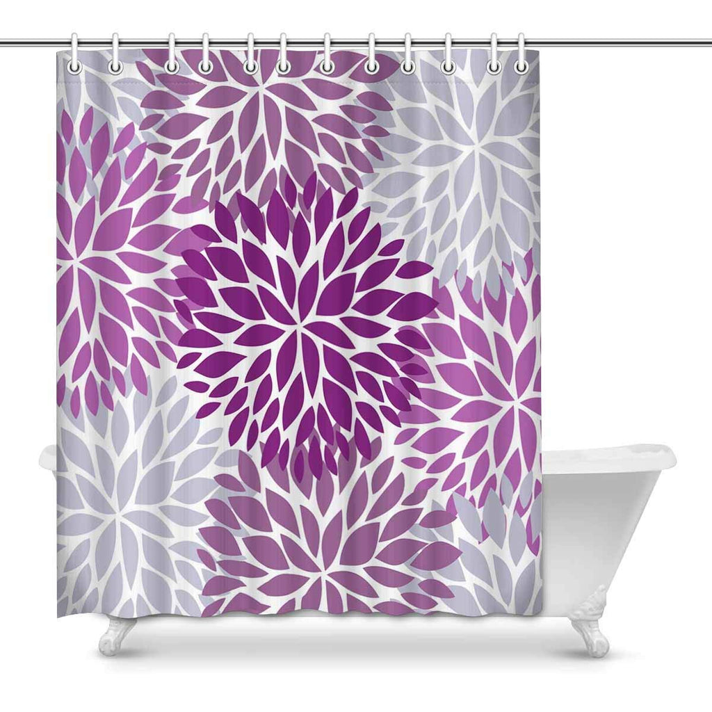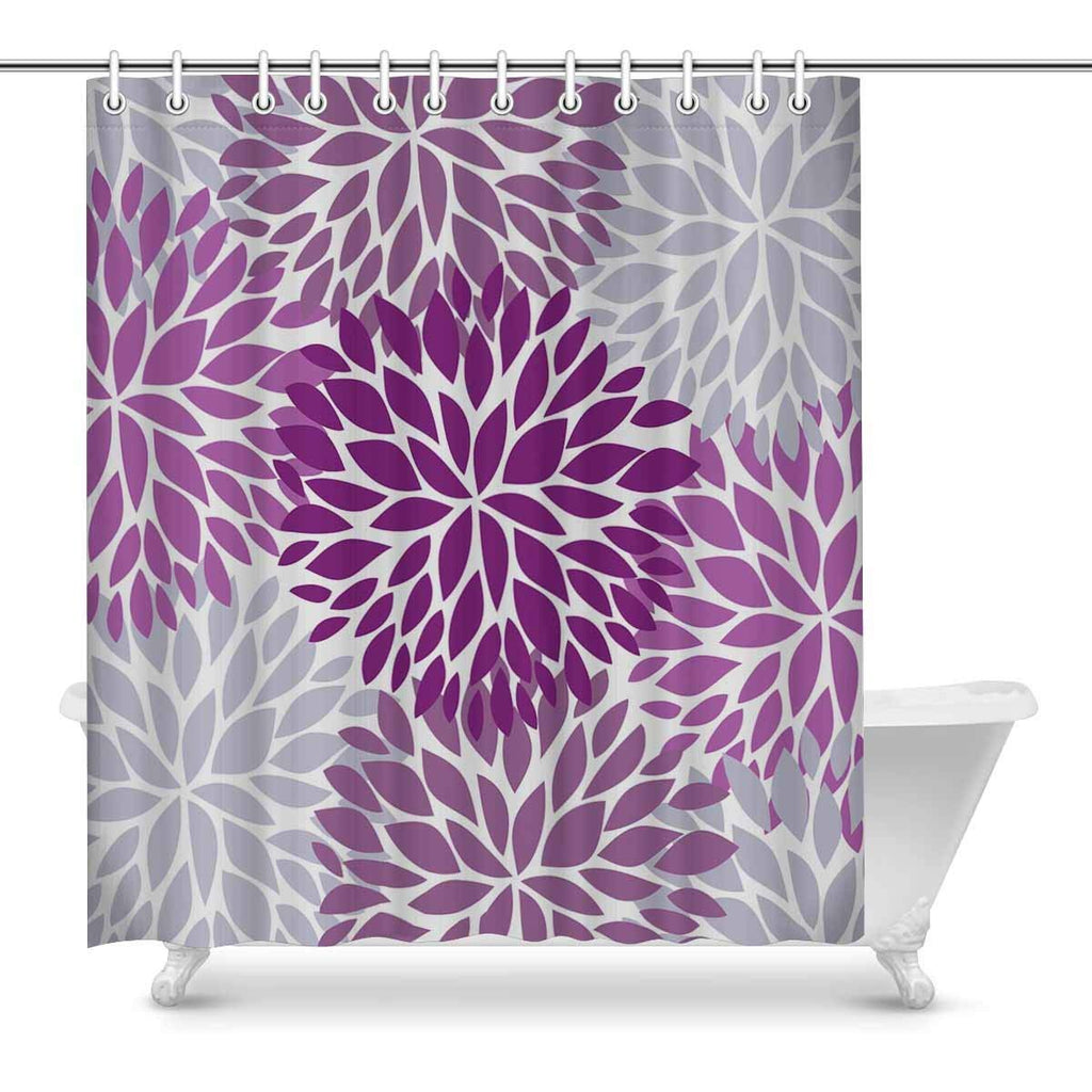 Dahlia Pinnata Flower Purple and Gray Bathroom Shower Curtain
