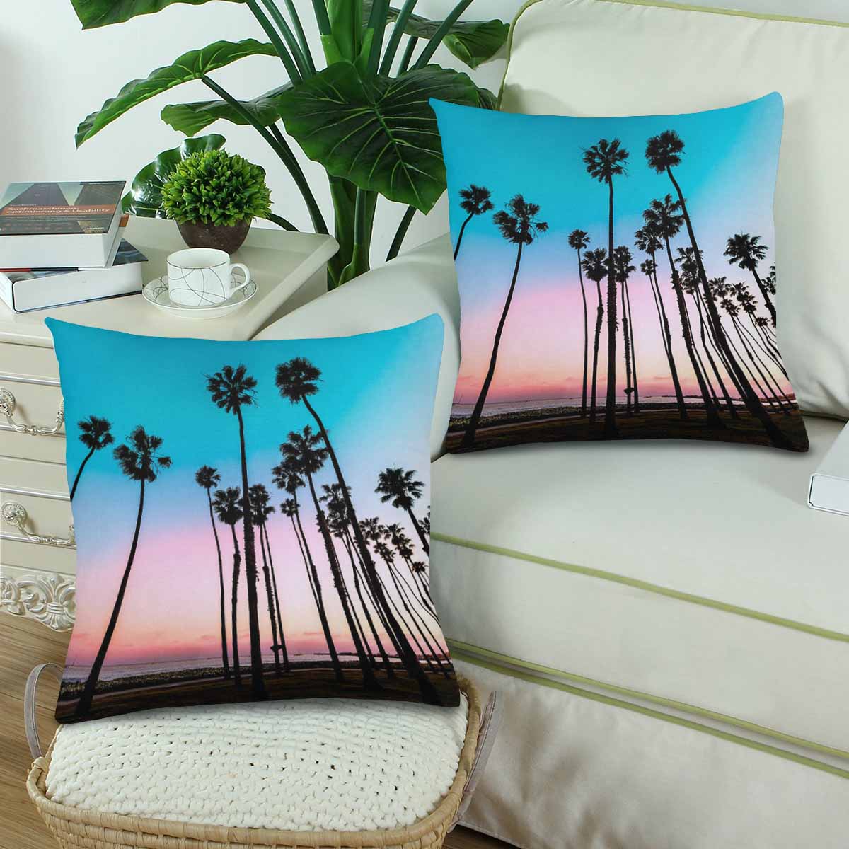 Pillow Cases printed with California sunset Palm tree rows