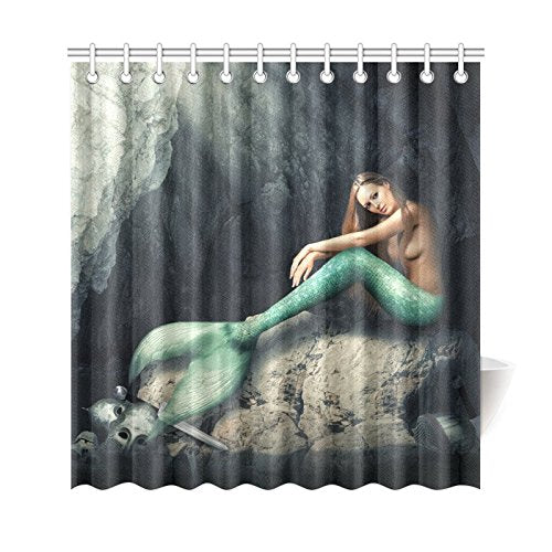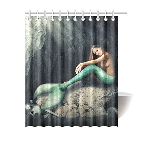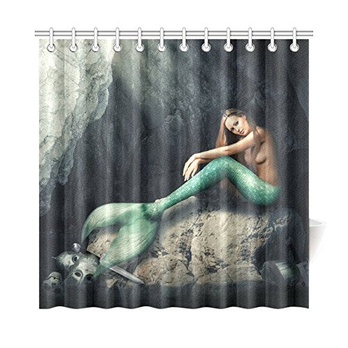 Fantasy Home Bath Decor, Ocean Sea Mermaid Polyester Fabric Shower Curtain Bathroom Sets