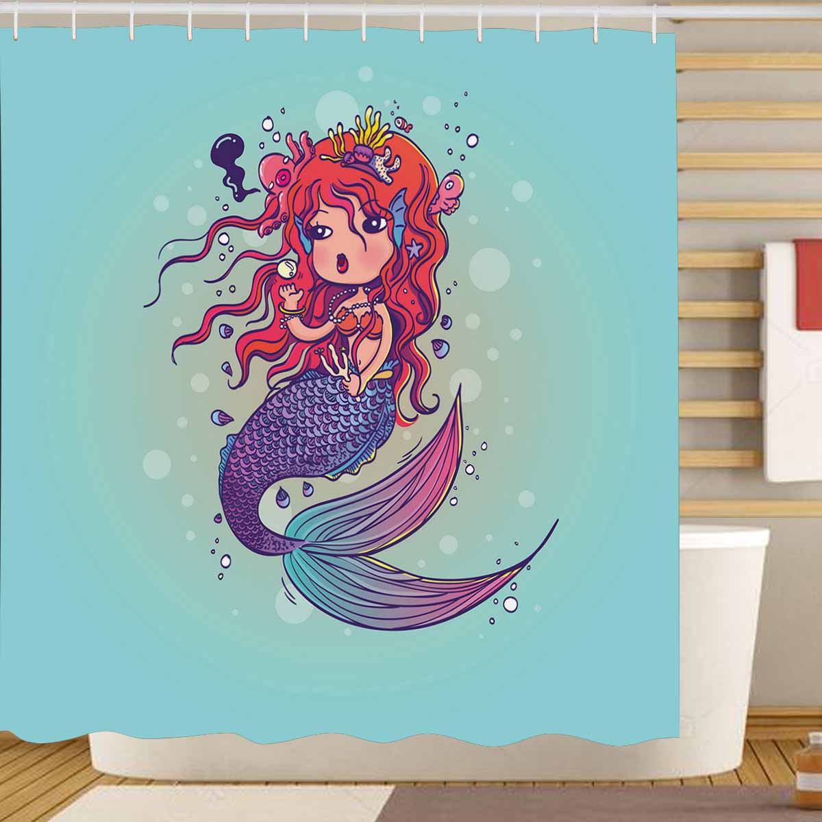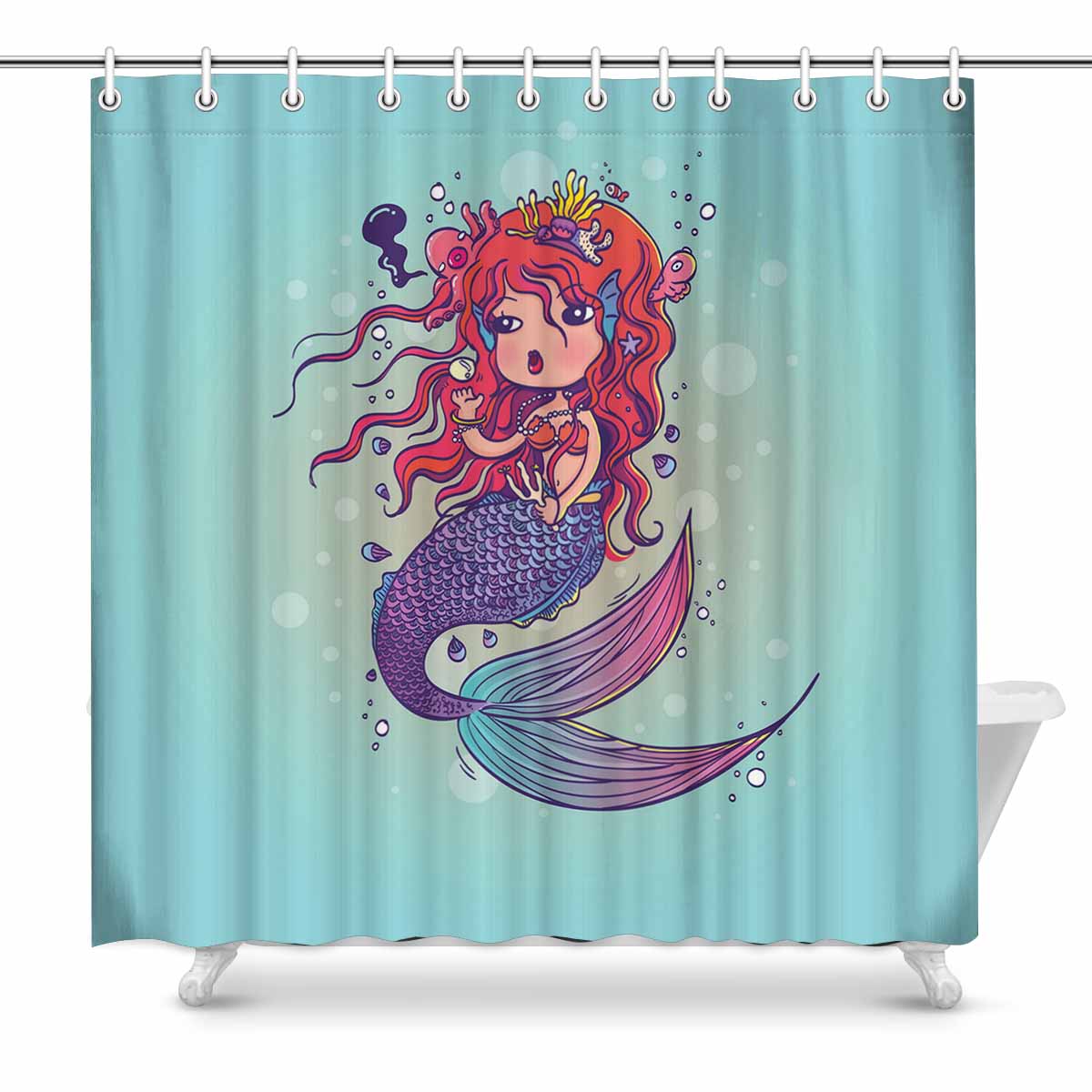 Nautical and Mermaid themed Shower Curtains print Doodle Mermaid Under the Sea Cartoon Character