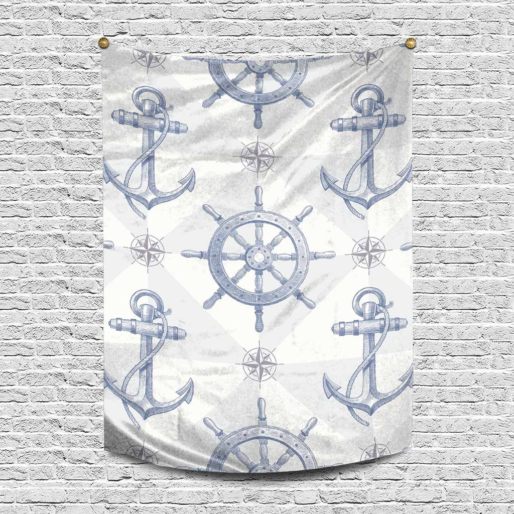 Nature Landscape themed Wall Tapestries printed ship steering wheel and anchor