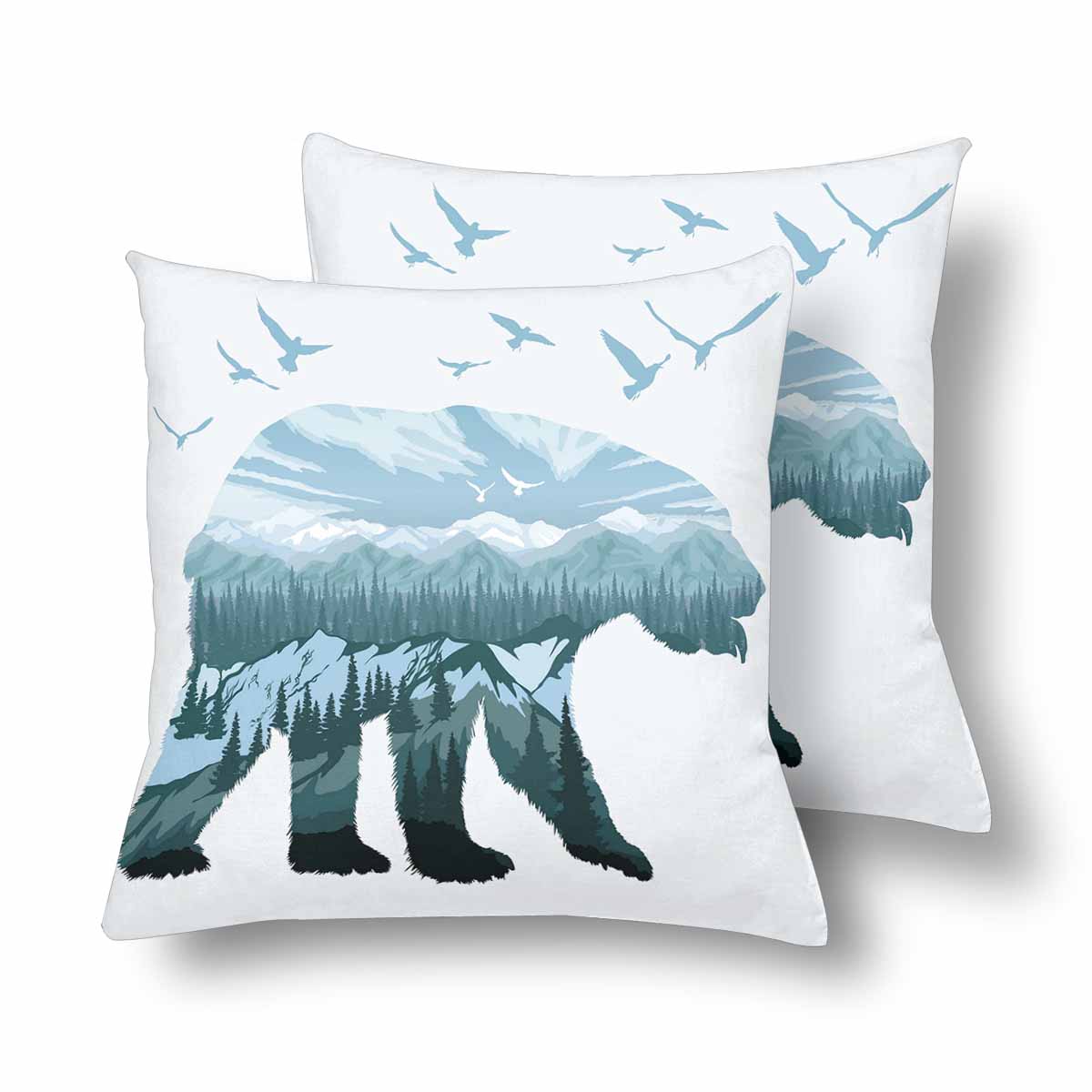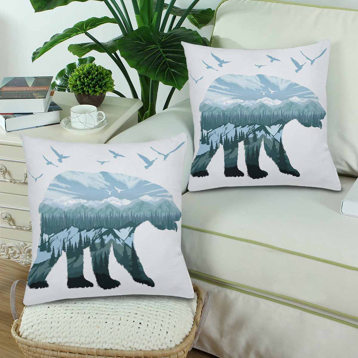 Animals themed Pillow Cases printed with Double exposure, bear and forest mountain landscape, wildlife concept