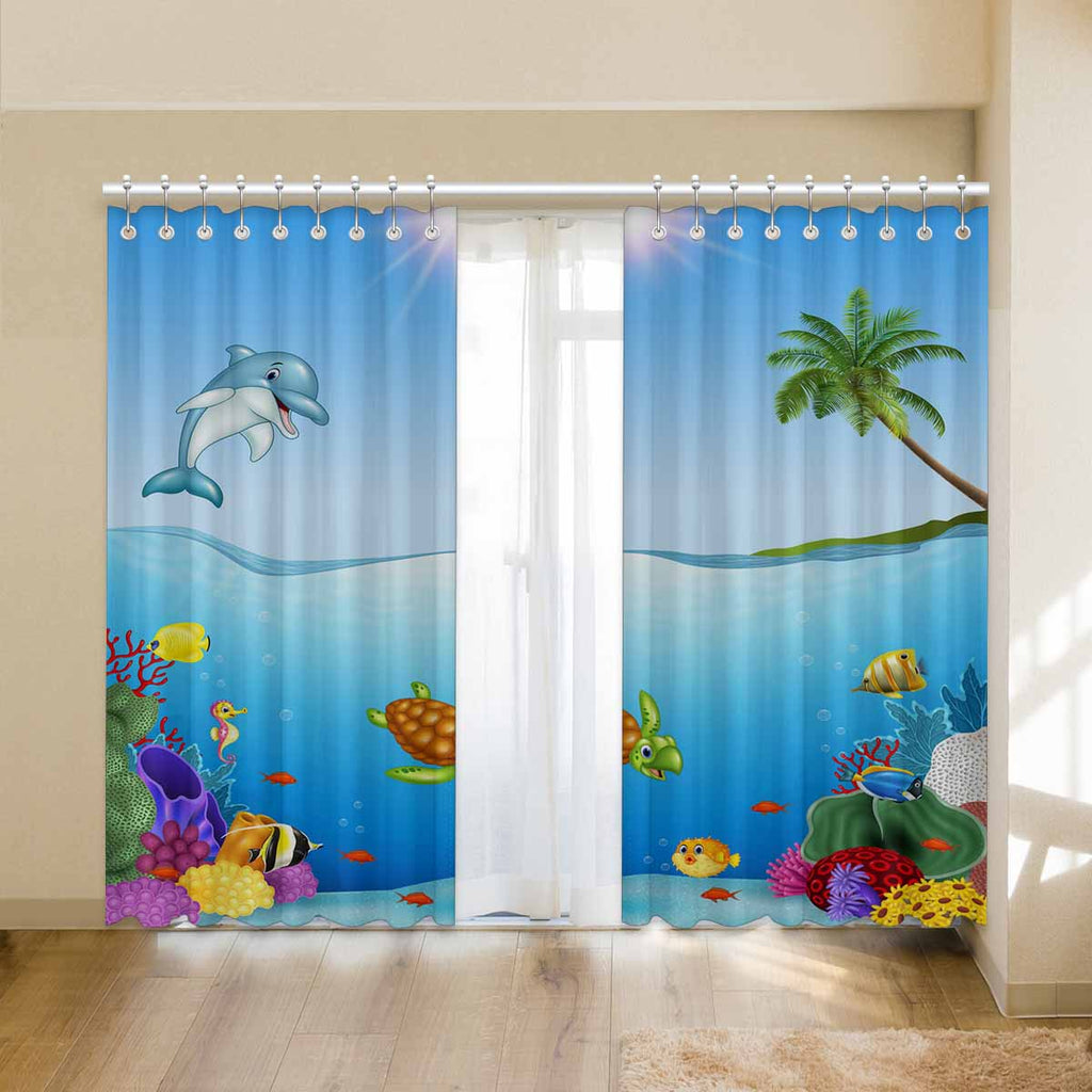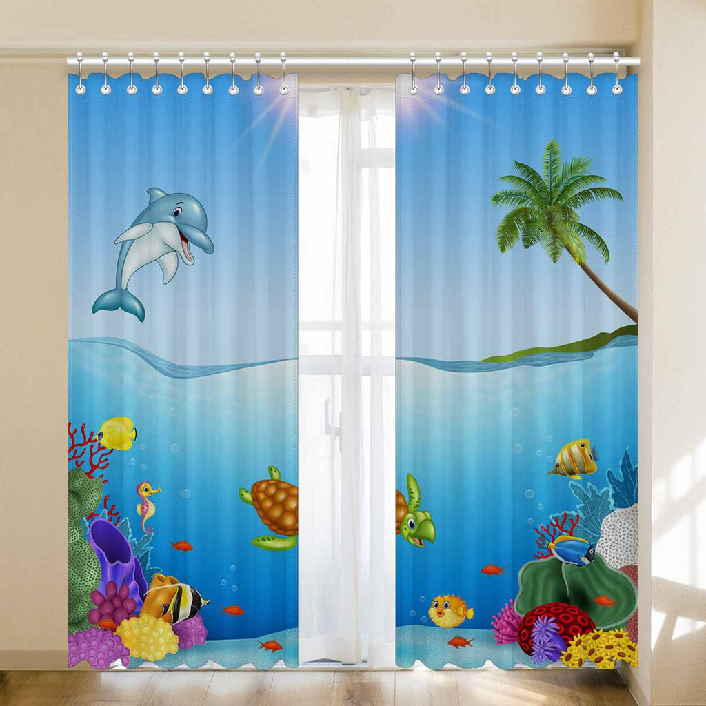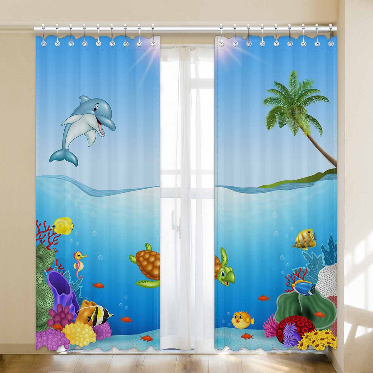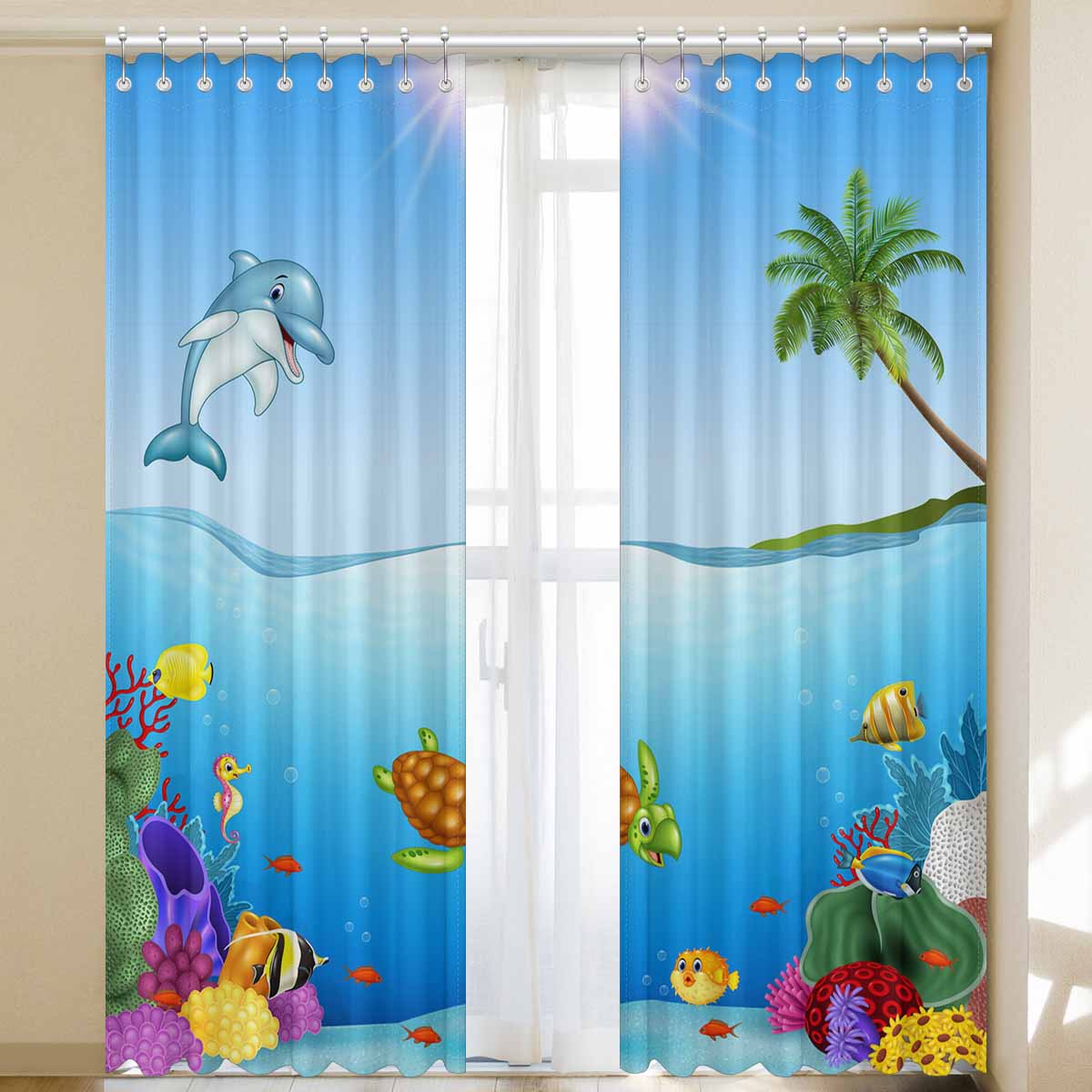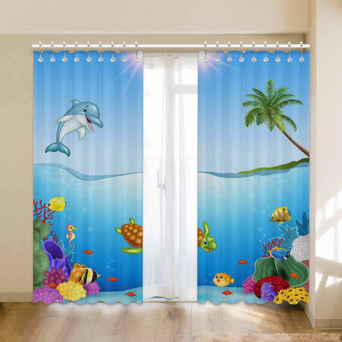Seaworld Window Curtains print Cartoon tropical fish themed