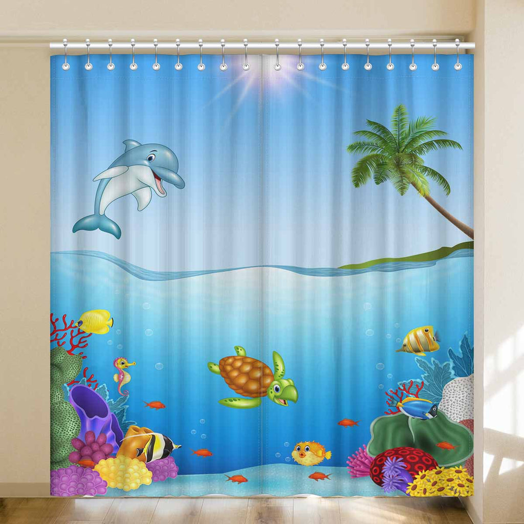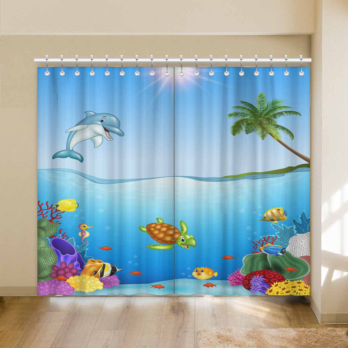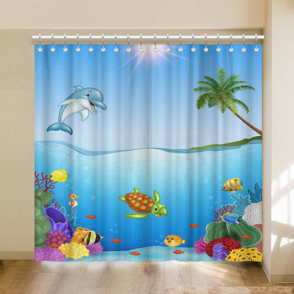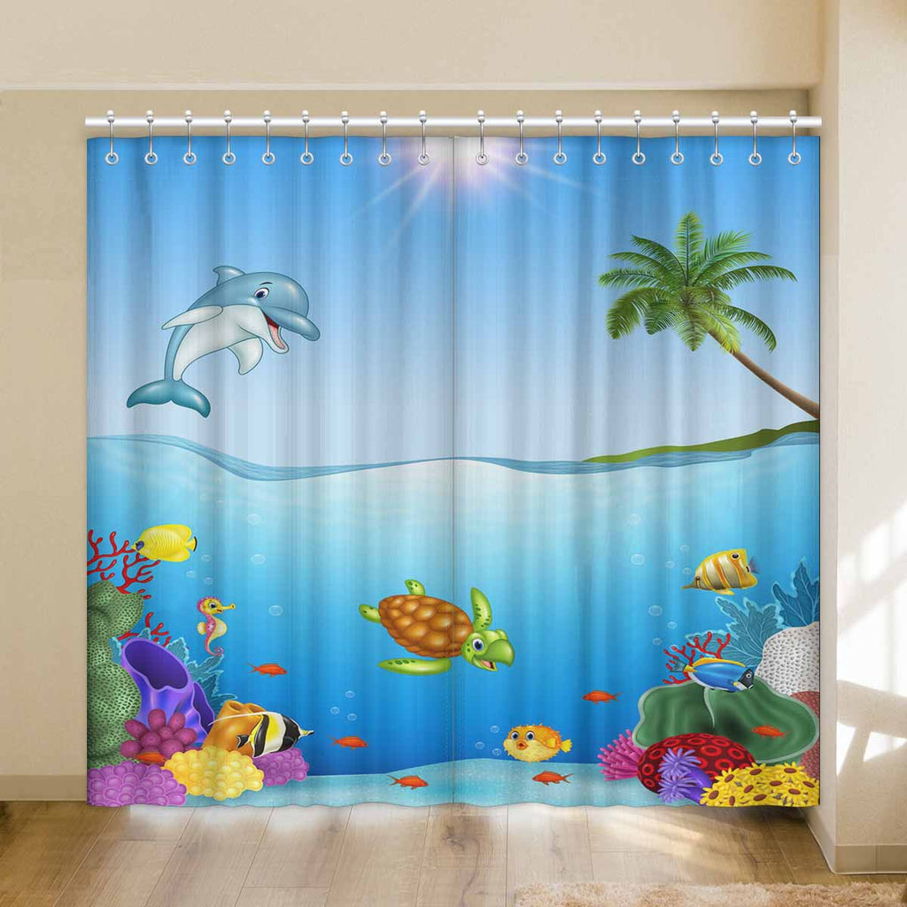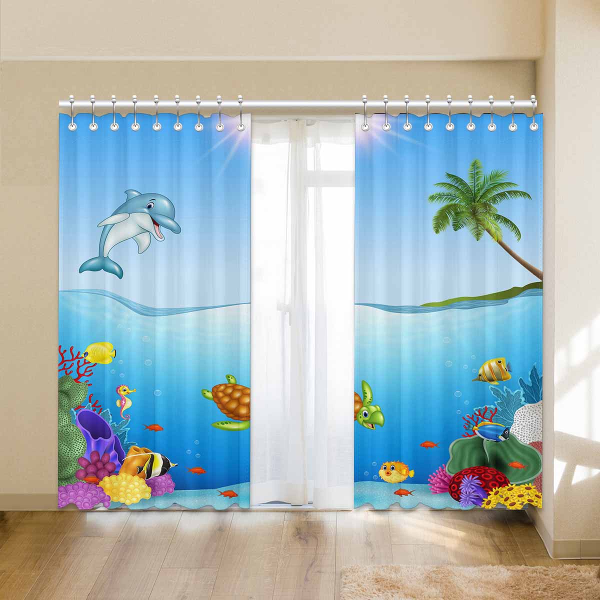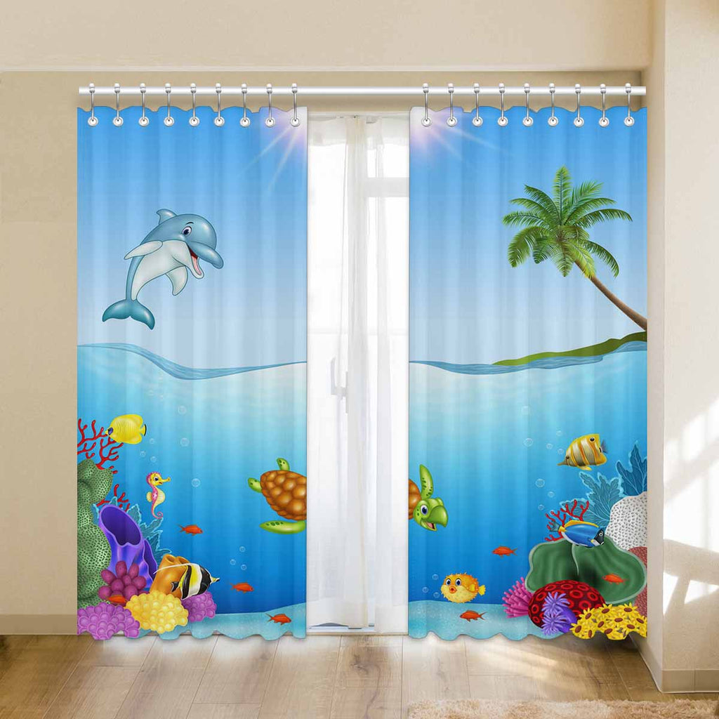 Seaworld Window Curtains print Cartoon tropical fish themed