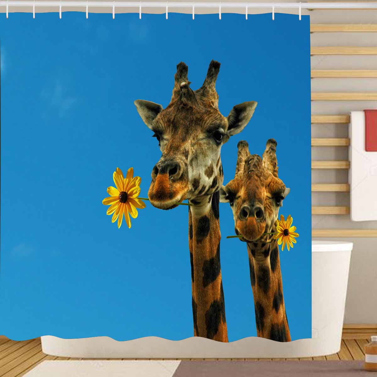 Shower Curtains print with Two lovely giraffes on a nice blue day