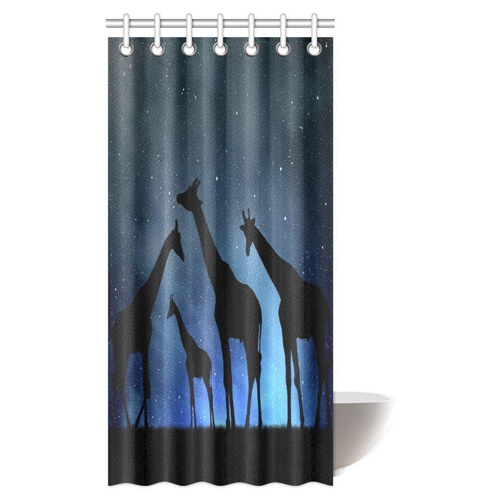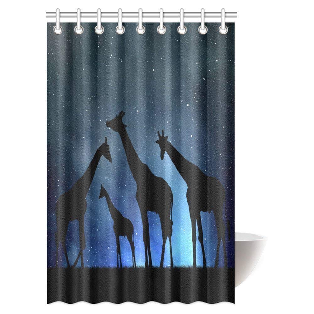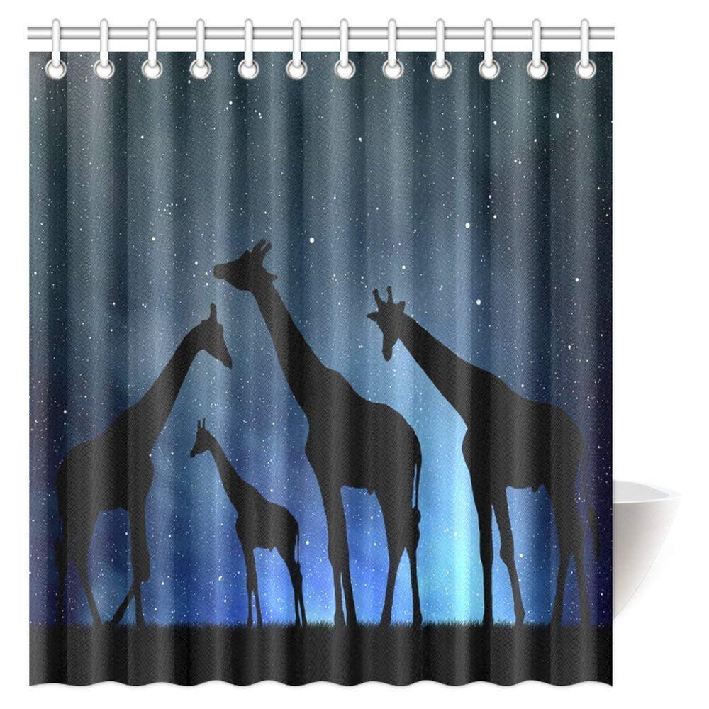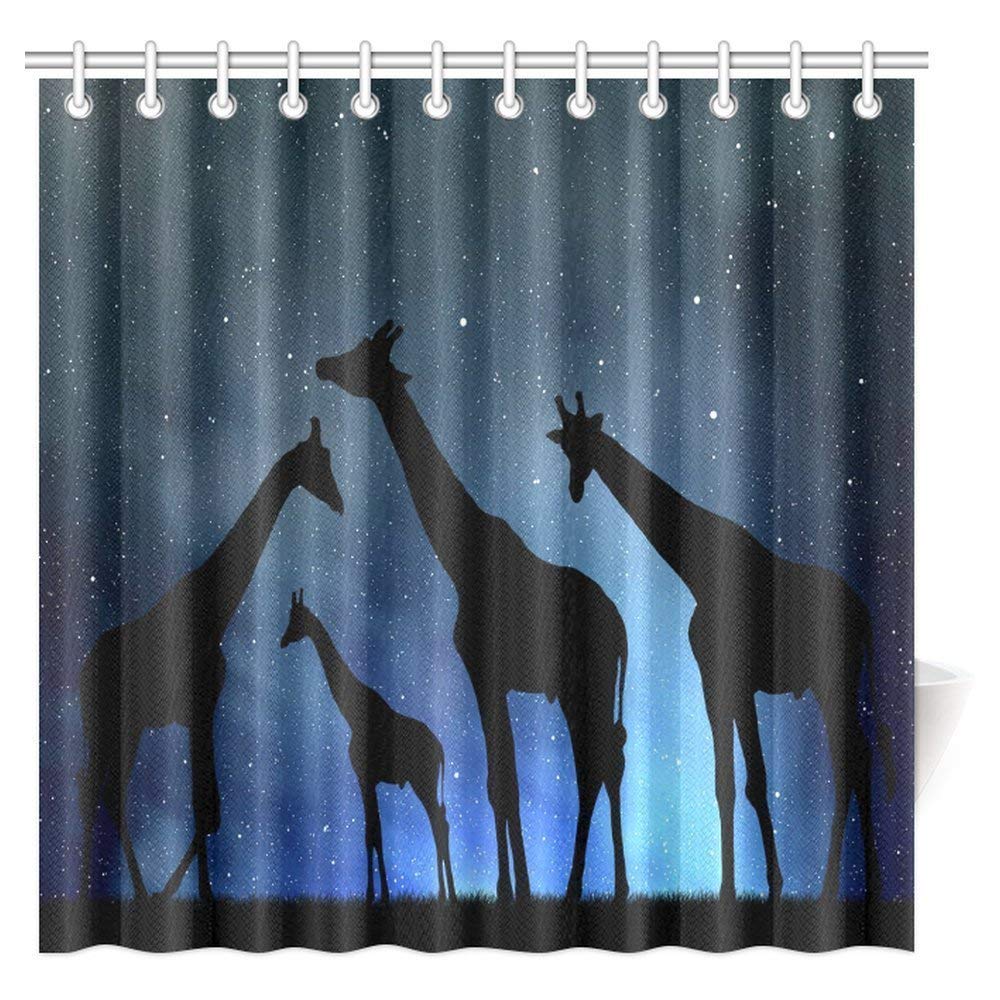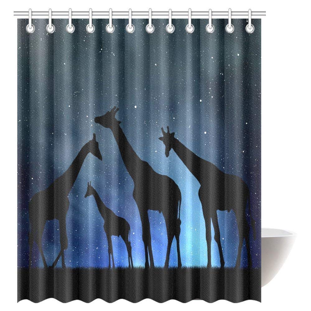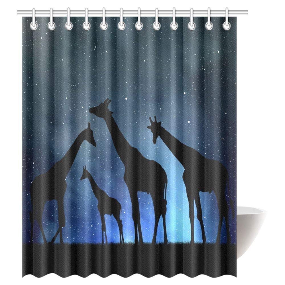 Wildlife Shower Curtain Set, Safari with Giraffe Crew in the Night Sky Polyester Fabric Shower Curtain