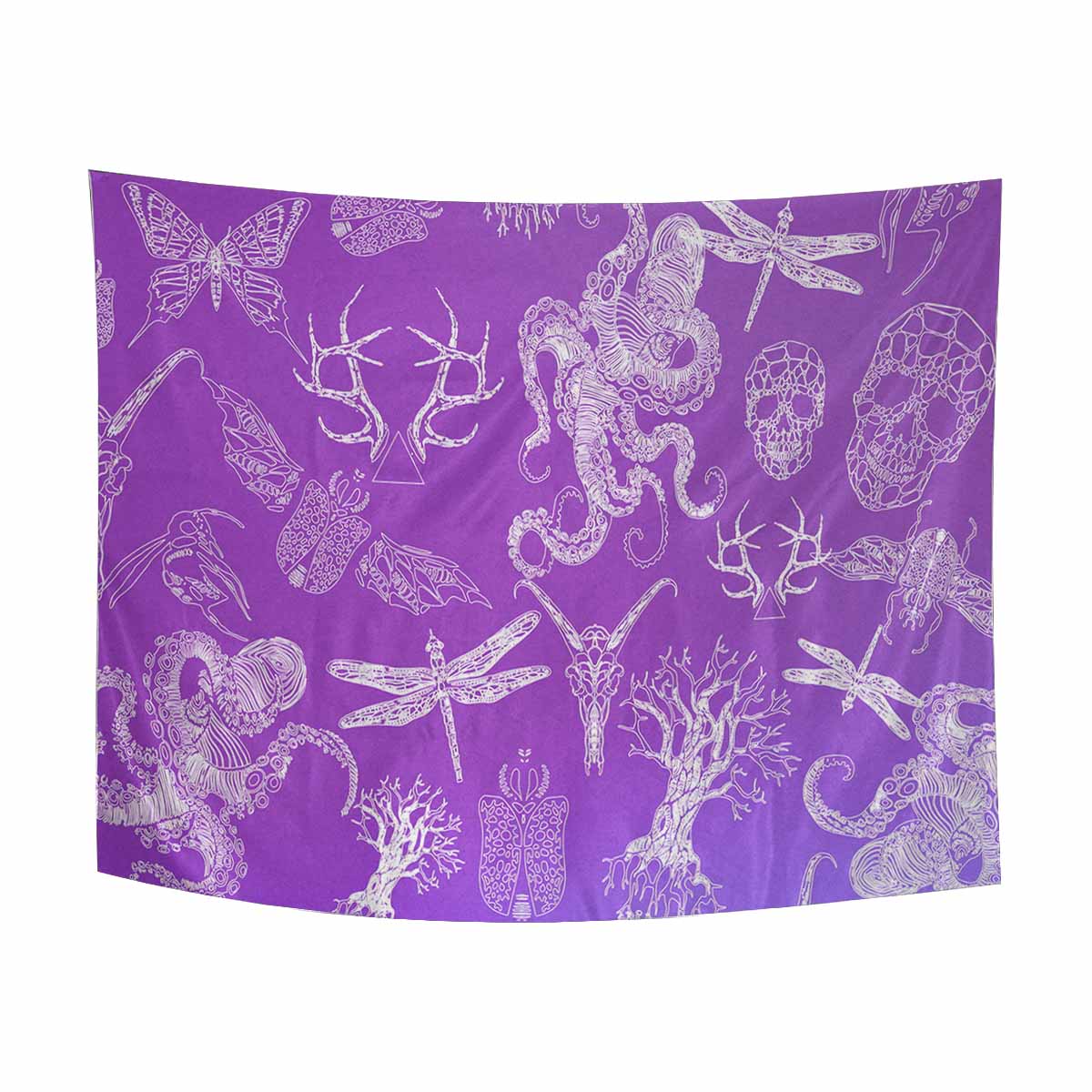 Skull themed Wall Tapestries printed octopuscrystall skulldragonfly