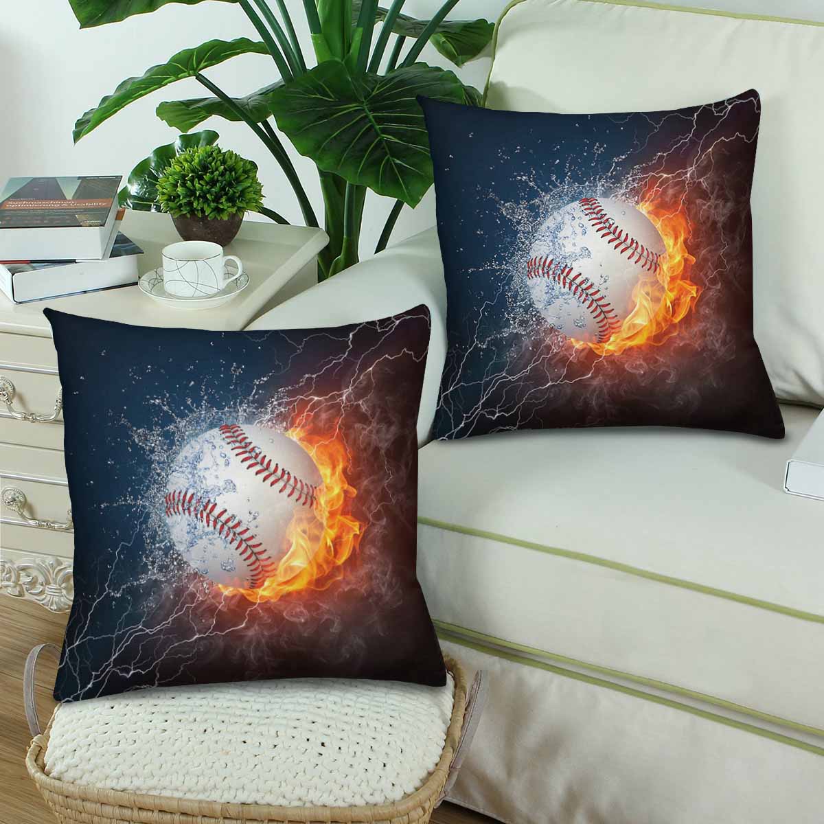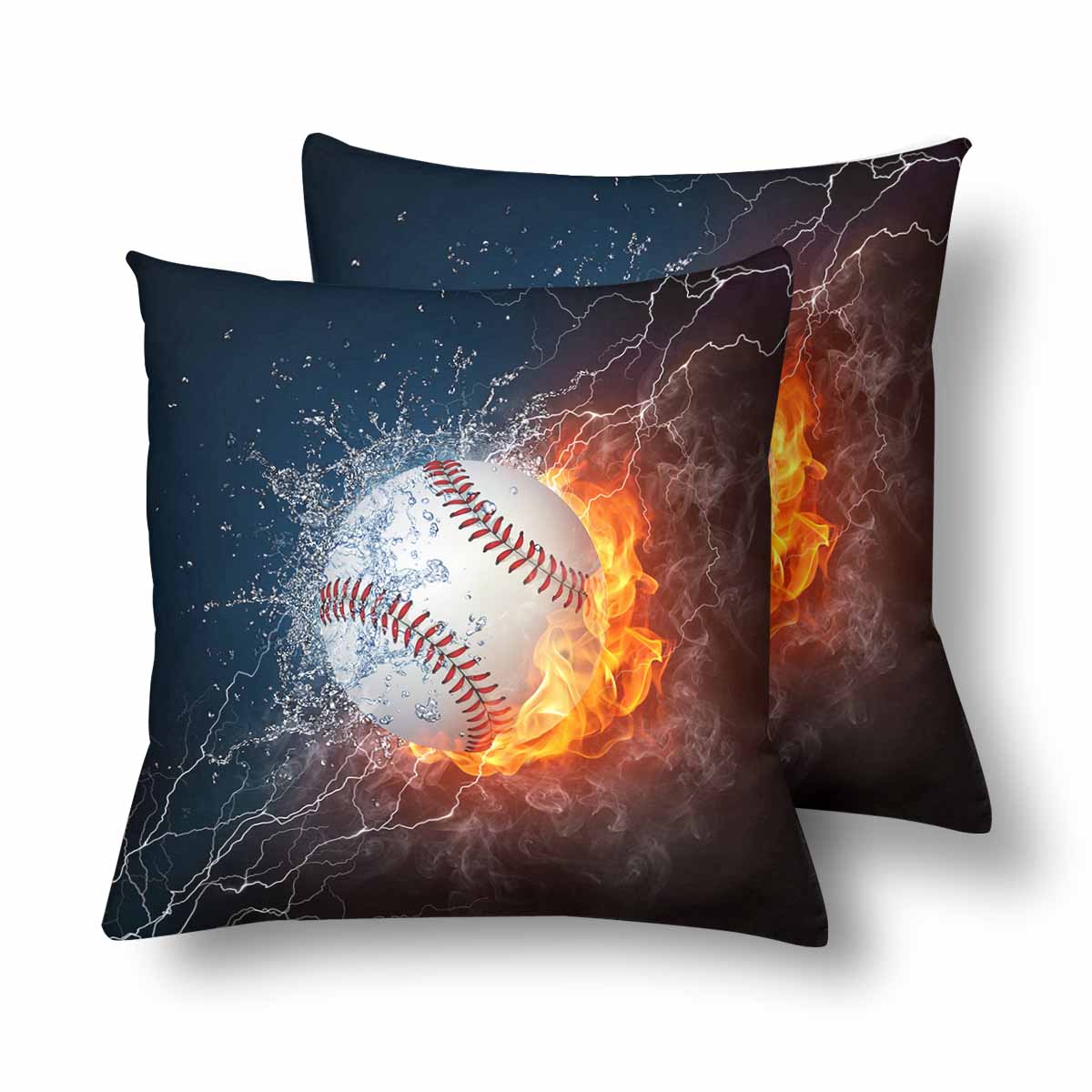 Sports themed Pillow Cases printed with Baseball Ball on Fire and Water