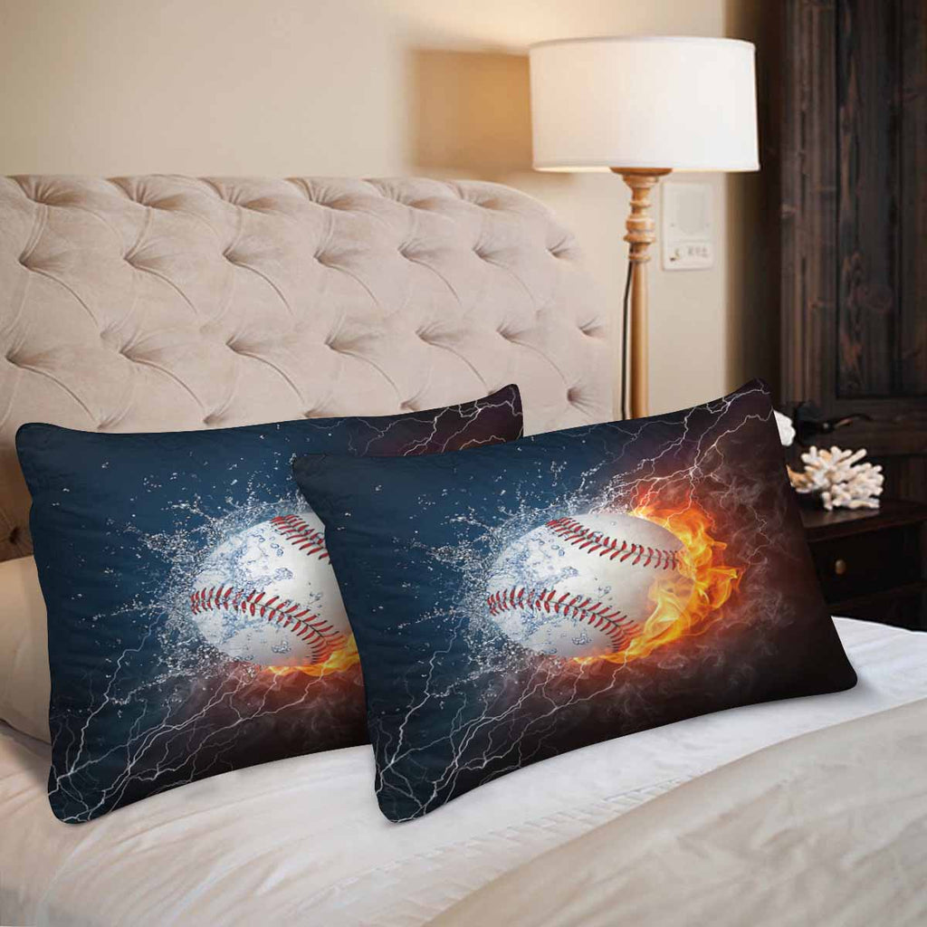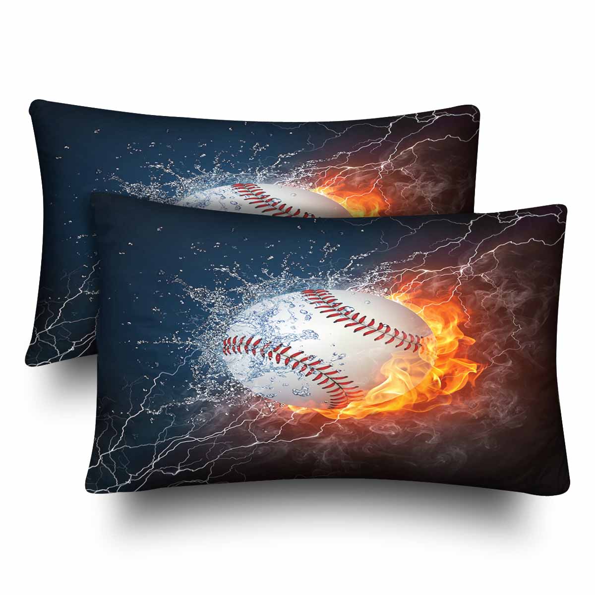 Sports themed Rectangle Pillow Cases printed Baseball Ball on Fire and Water