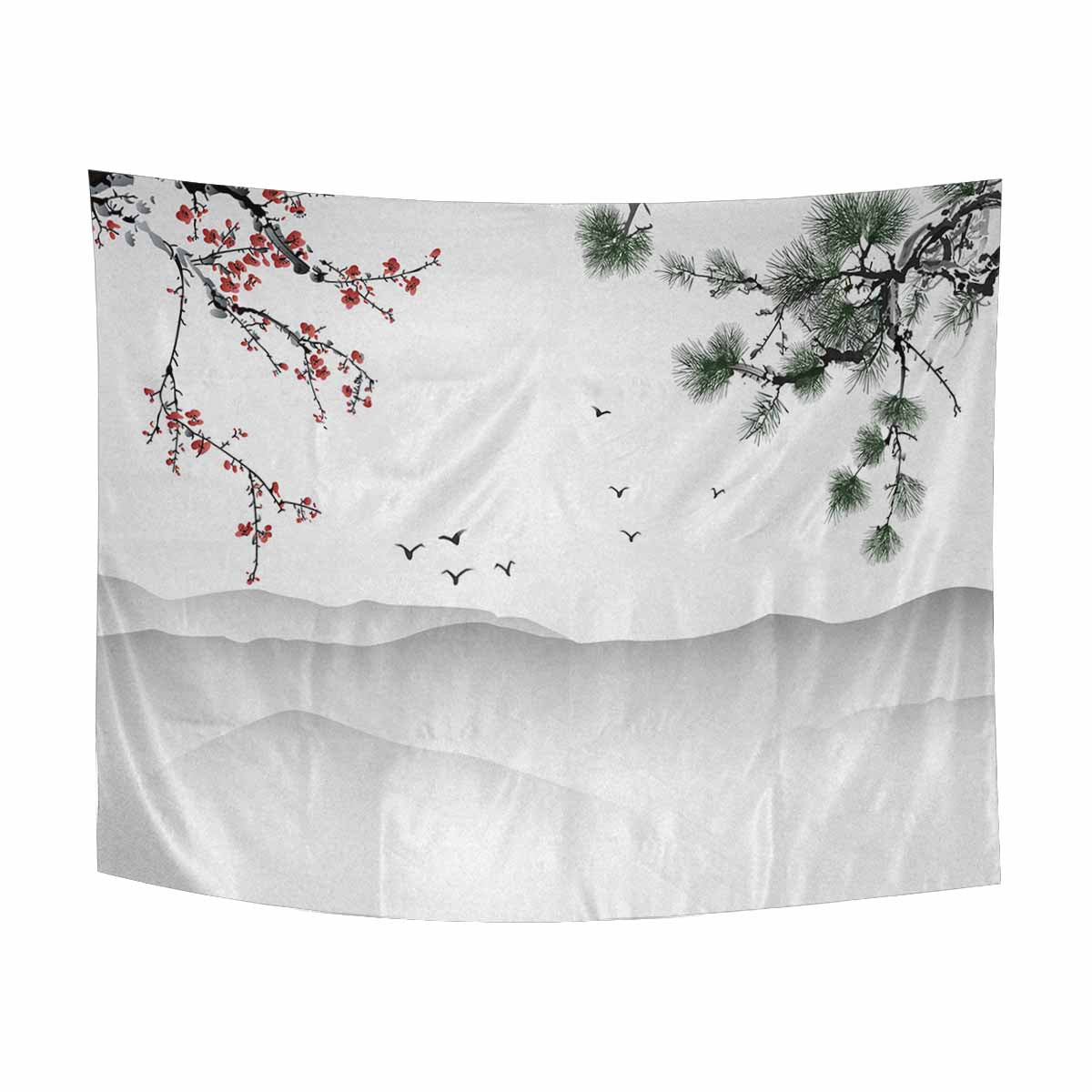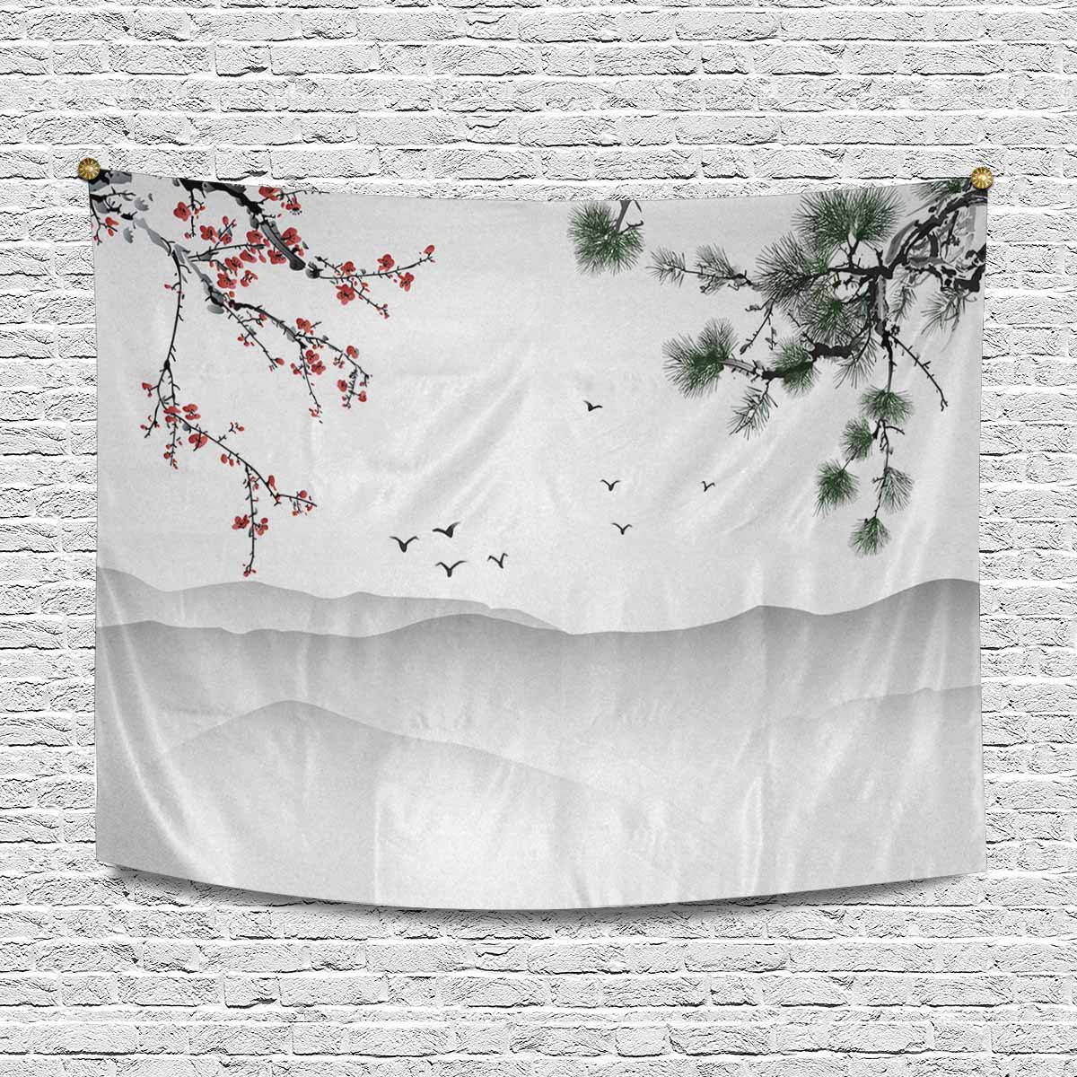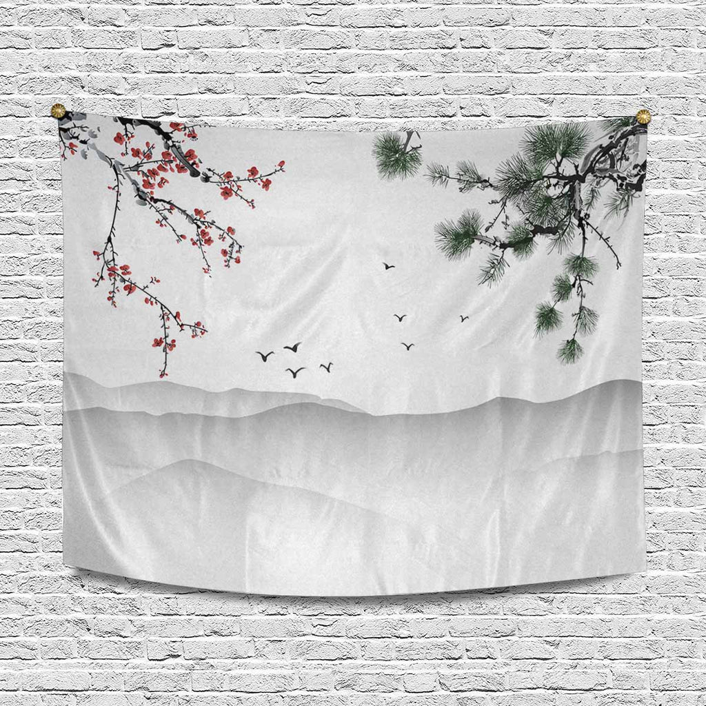 Tree and Moutain themed Wall Tapestries printed Chinese painting plum blossom and pine tree