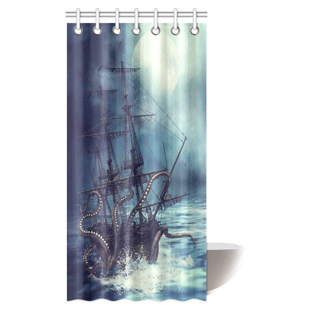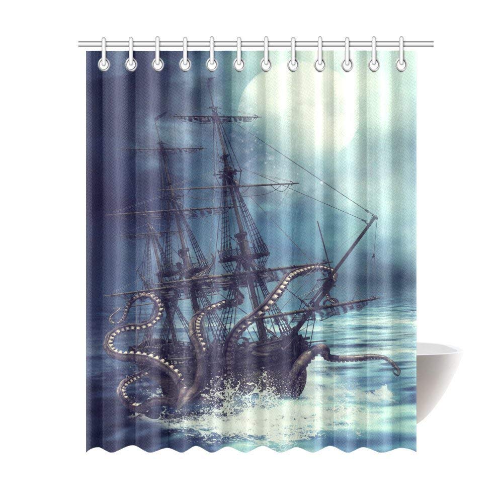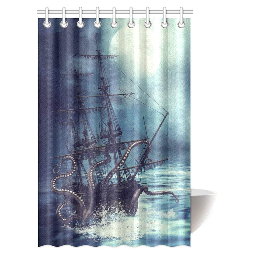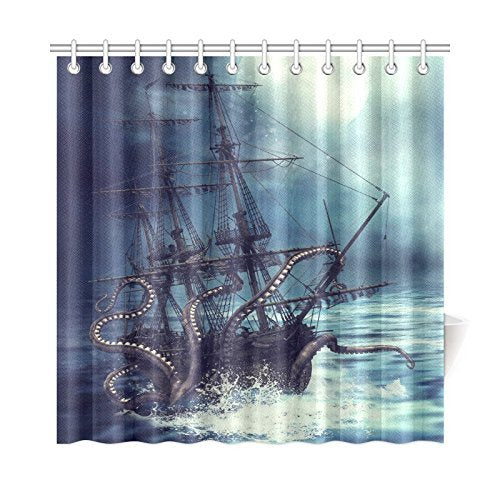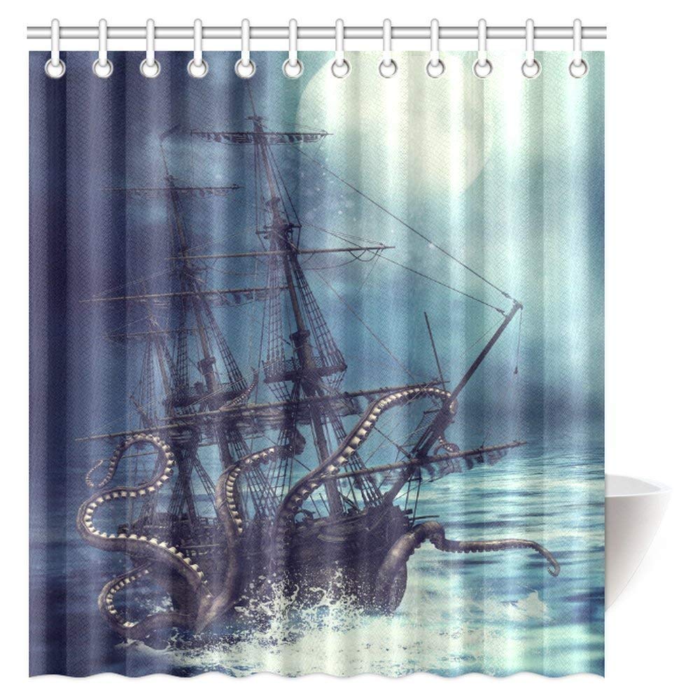 Pirate Ship Octopus Tentacles Home Textile Bathroom Decoration Luxurious Cozy Lovely Decor Pleasing Design Effect Fabric Purple Shower Curtain