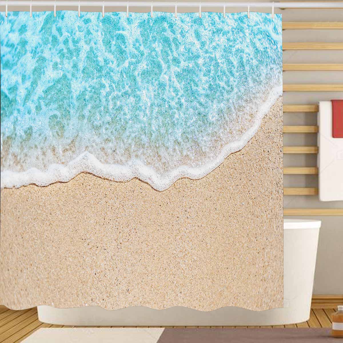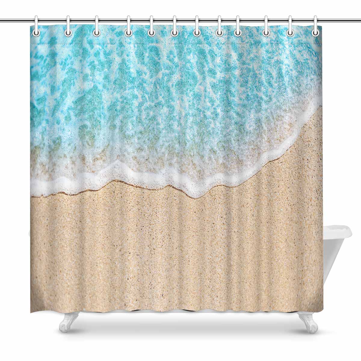 Tropical themed Shower Curtains Soft wave of blue ocean on sandy beach