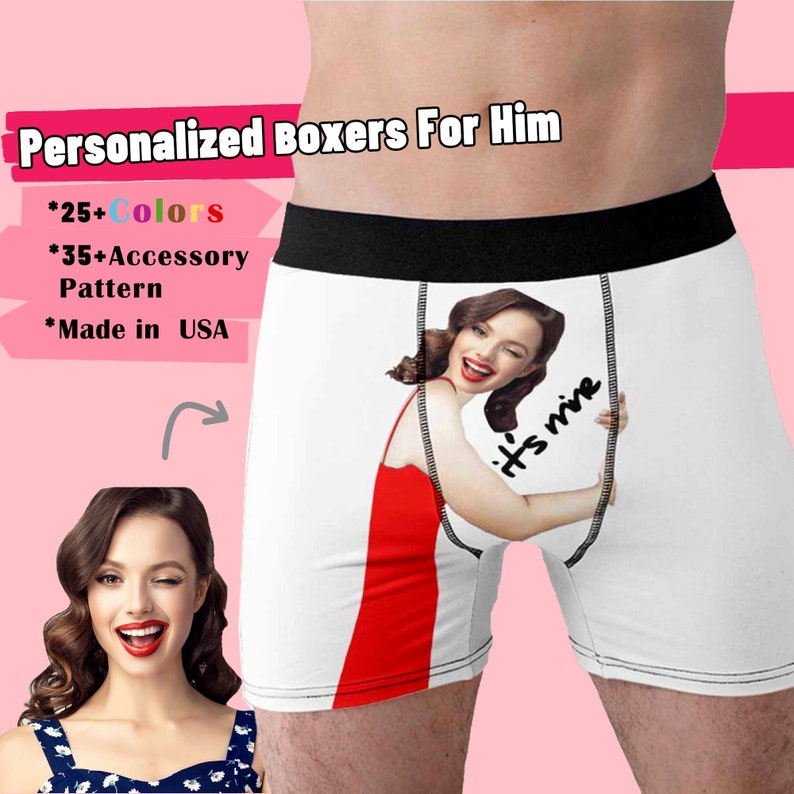 *Personalized Face Boxer Briefs for Him Husband, Valentines Gift for Husband from Wife, Custom Face Photo Underwear, Custom Photo Men Briefs
