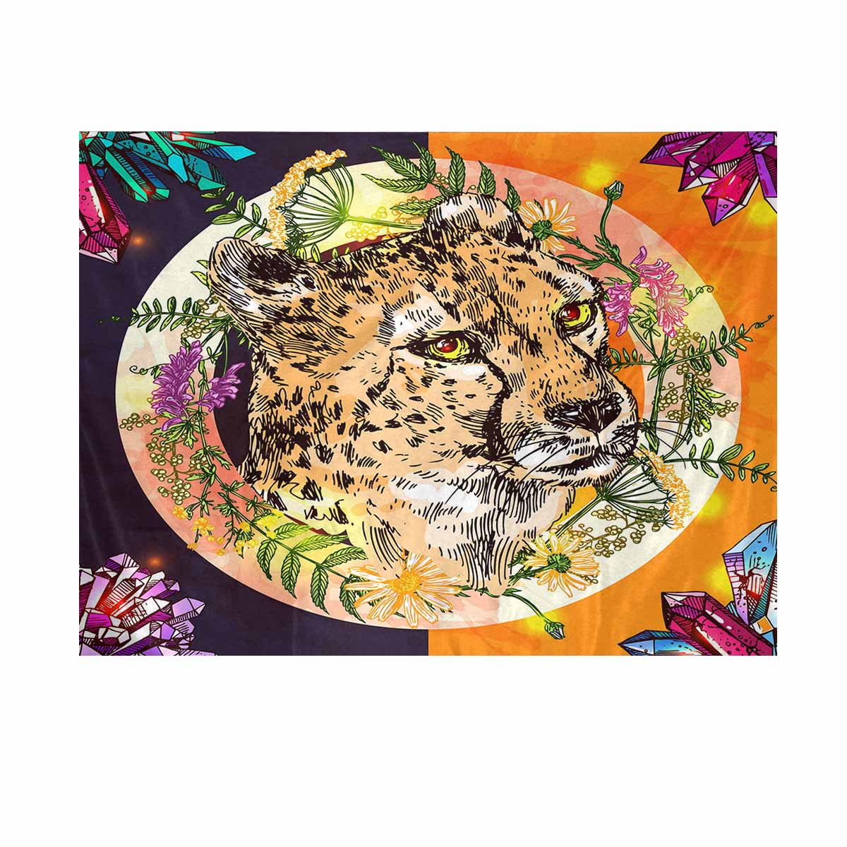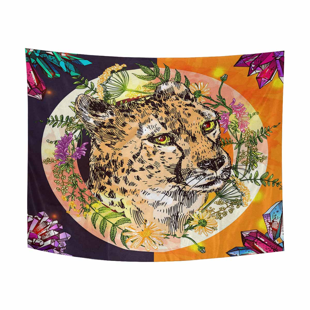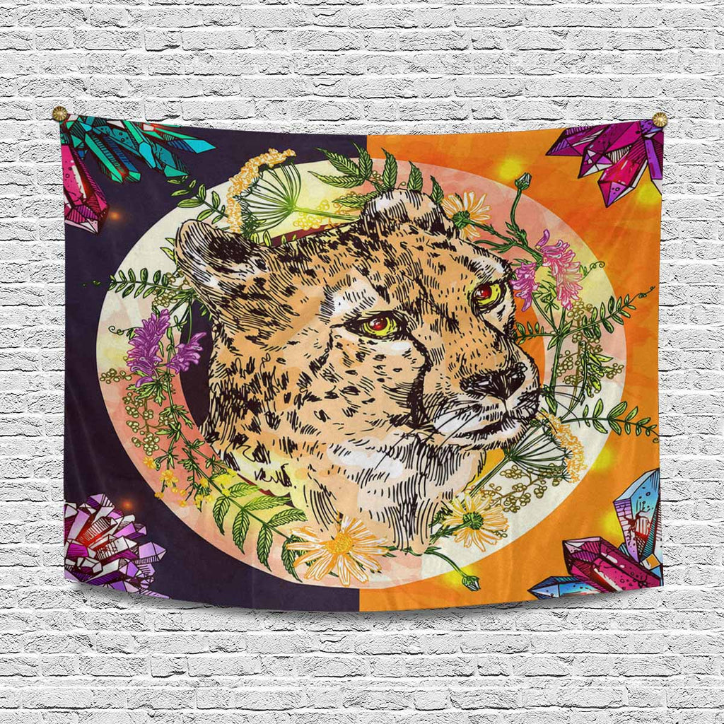 Animals themed Wall Tapestries print with boho style illustration portrait of cheetah