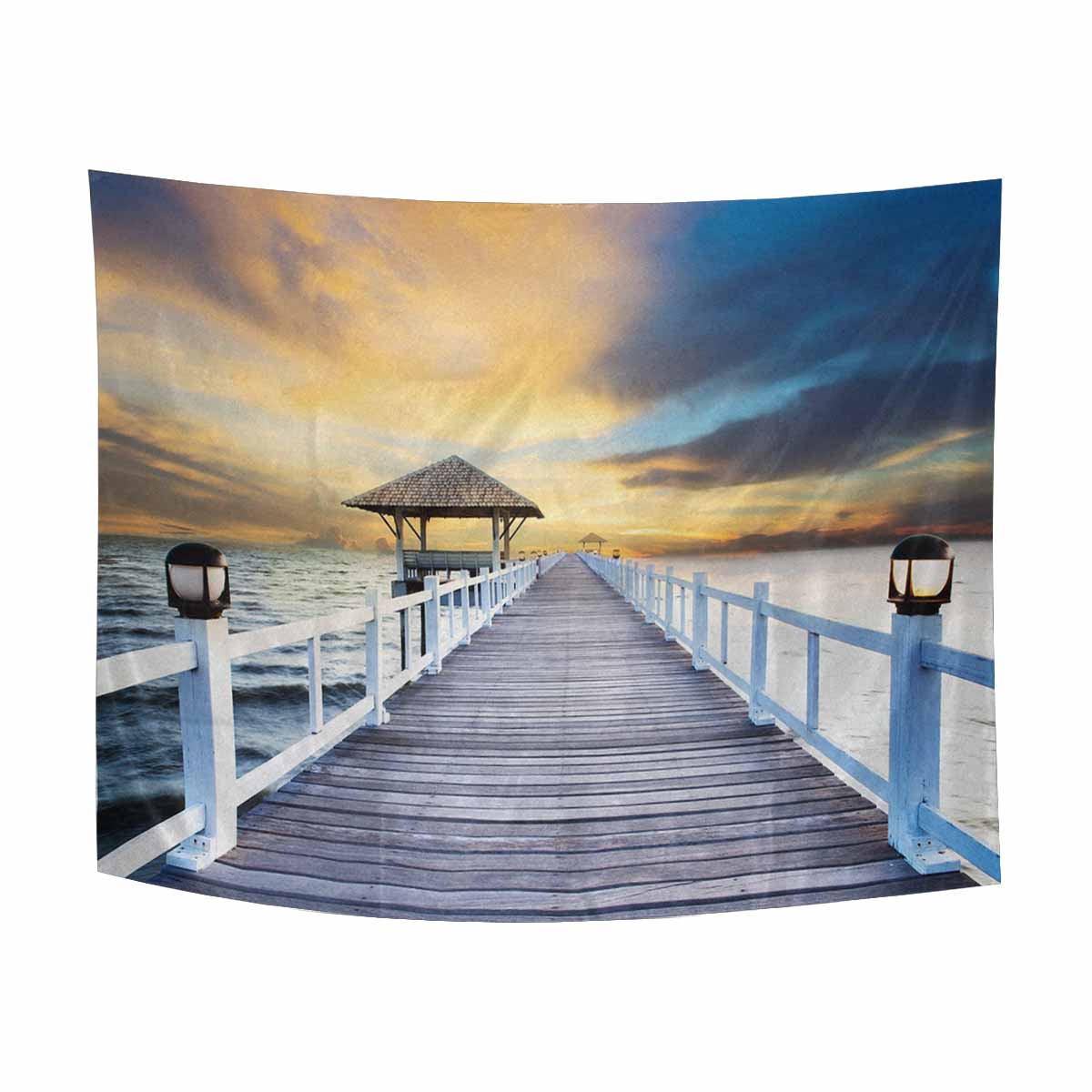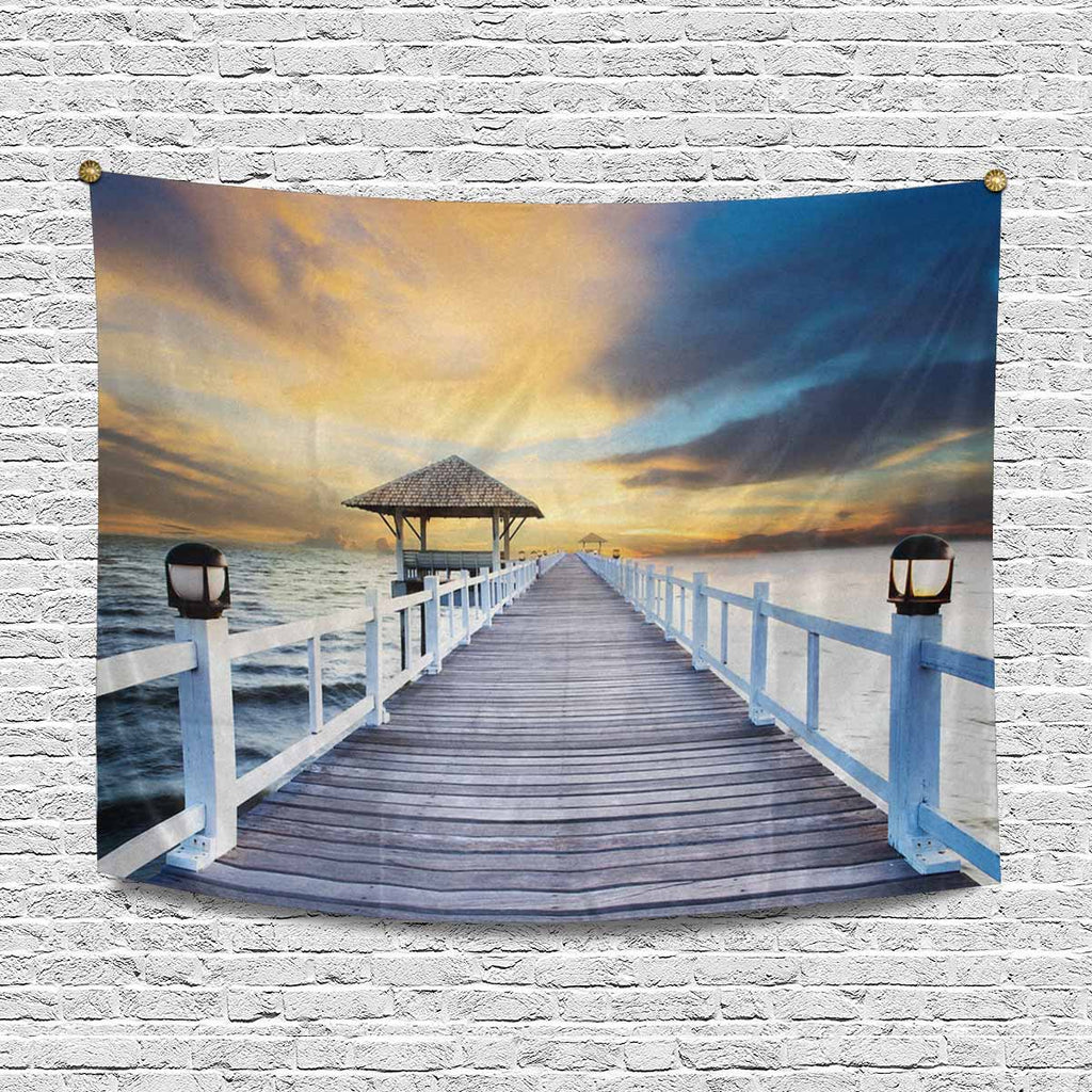 Coutry themed Wall Tapestries Wood piers and sea scene with dusky sky