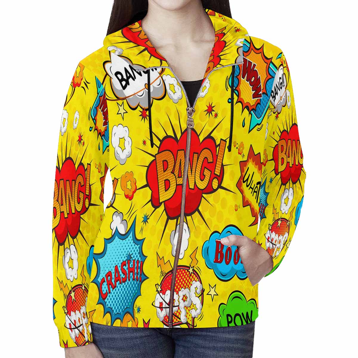 Women's Full Zip Hoodies print with cute Comic speech bubbles