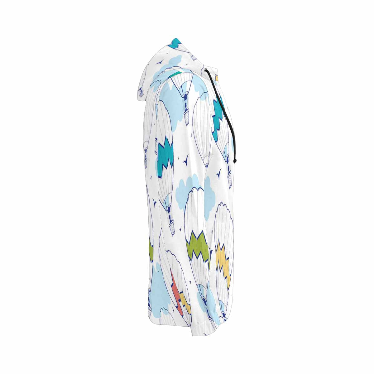 Features drawstring hood, long sleeves, elastic sleeve cuff and waistband.