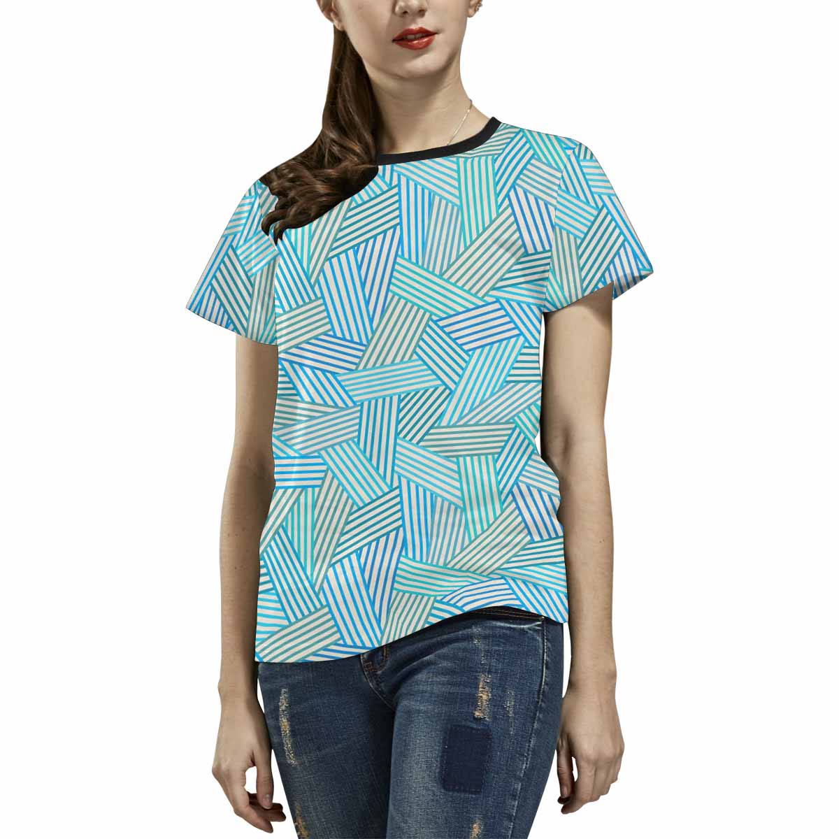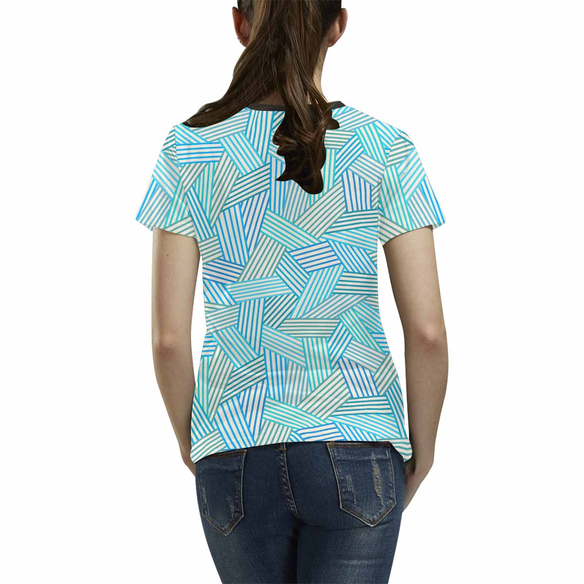 Womens graphic T-Shirts print with Abstarct blue linear pattern