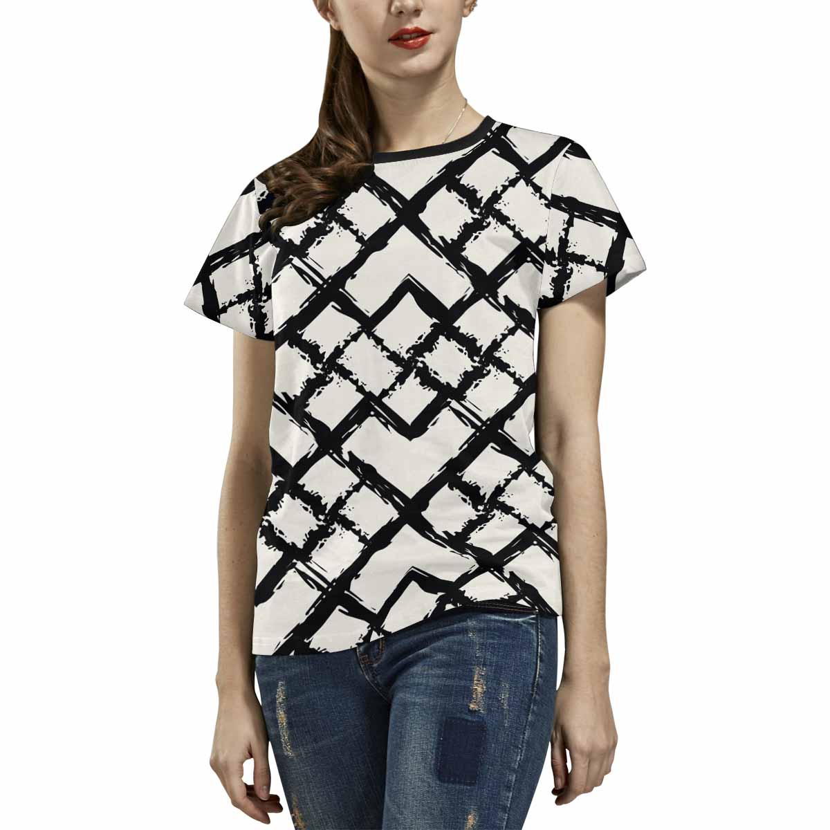 Womens graphic T-Shirts print with Abstract geometric grid square pattern