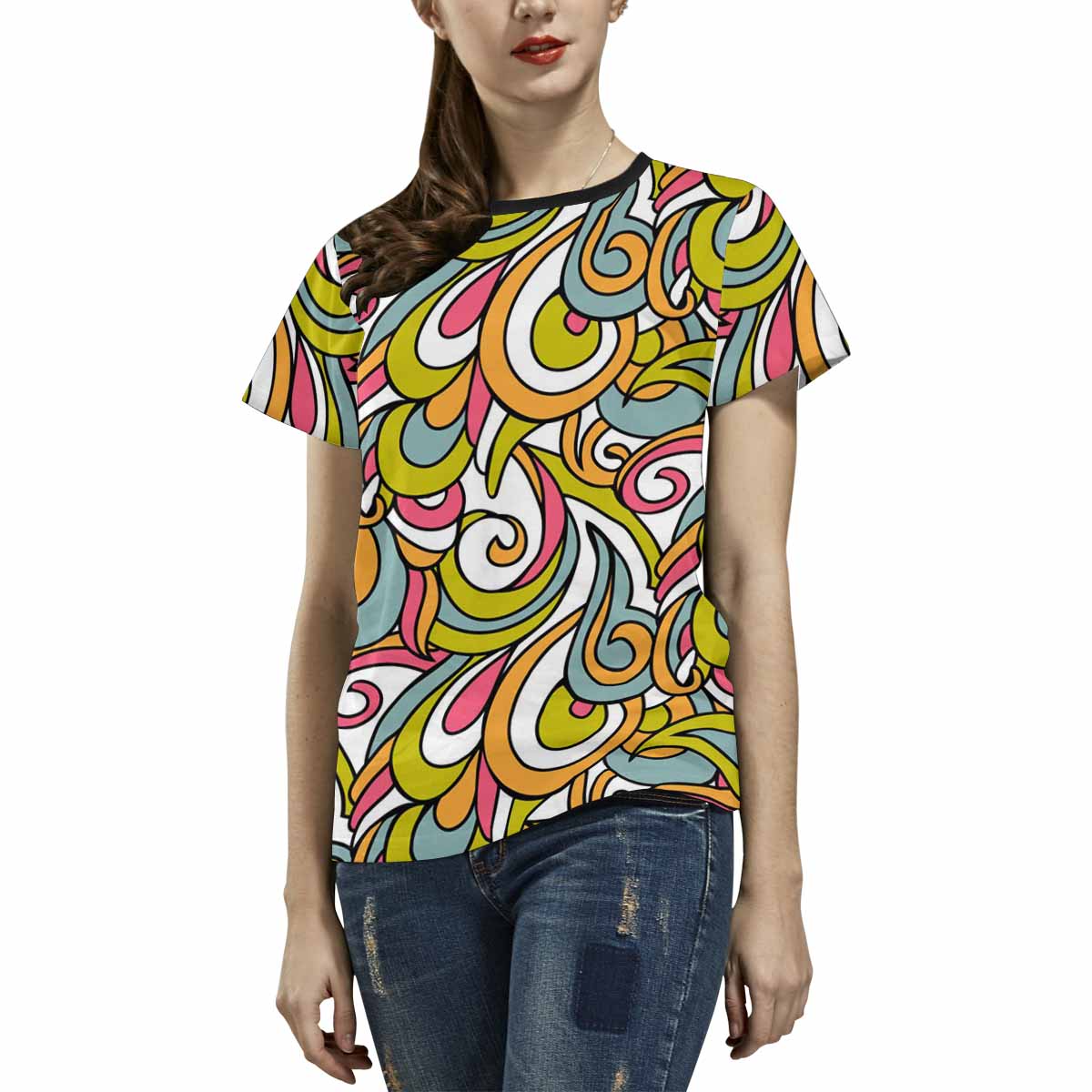 Womens graphic T-Shirts print with Abstract swirl pattern colorful waves