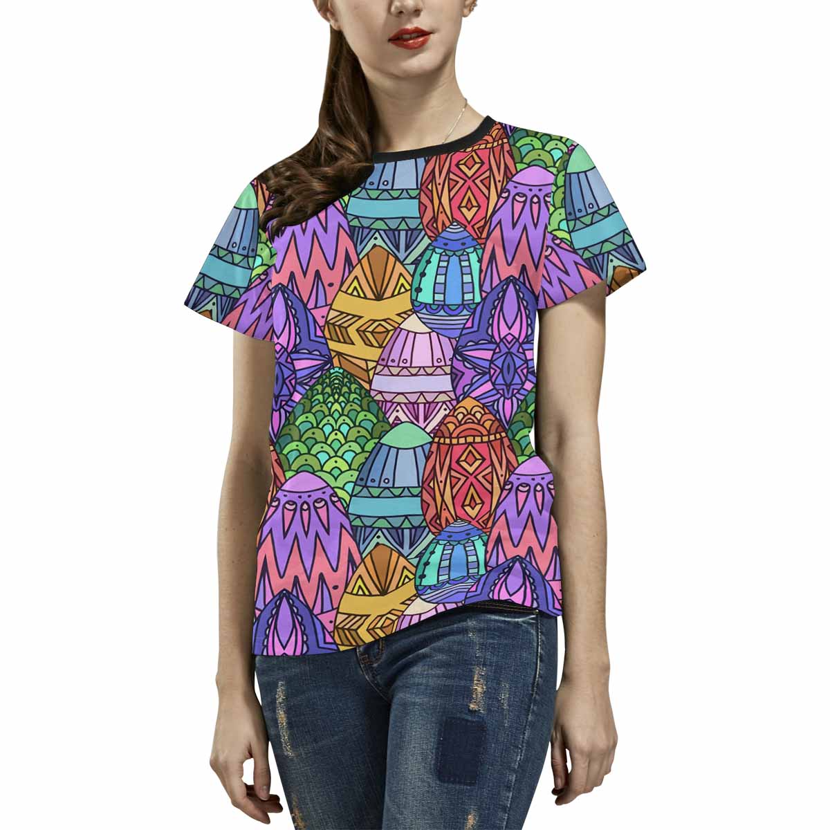 Womens graphic T-Shirts print with colored Easter eggs pattern