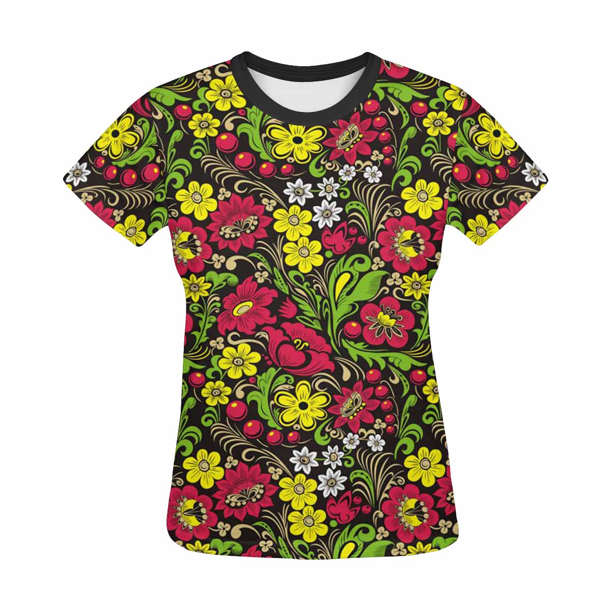 - 10.23 Oz. Polyester fabric. Dye-sublimation printing, Personalized all-over print T-shirt for women.