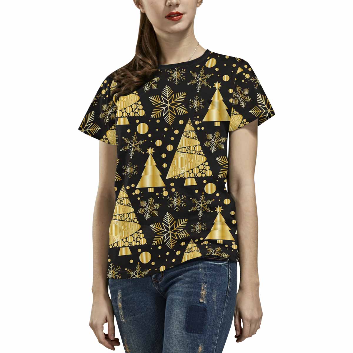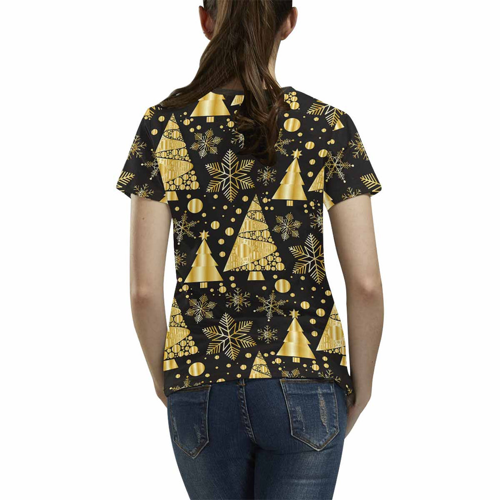 Womens graphic T-Shirts print with gold Conifer pattern