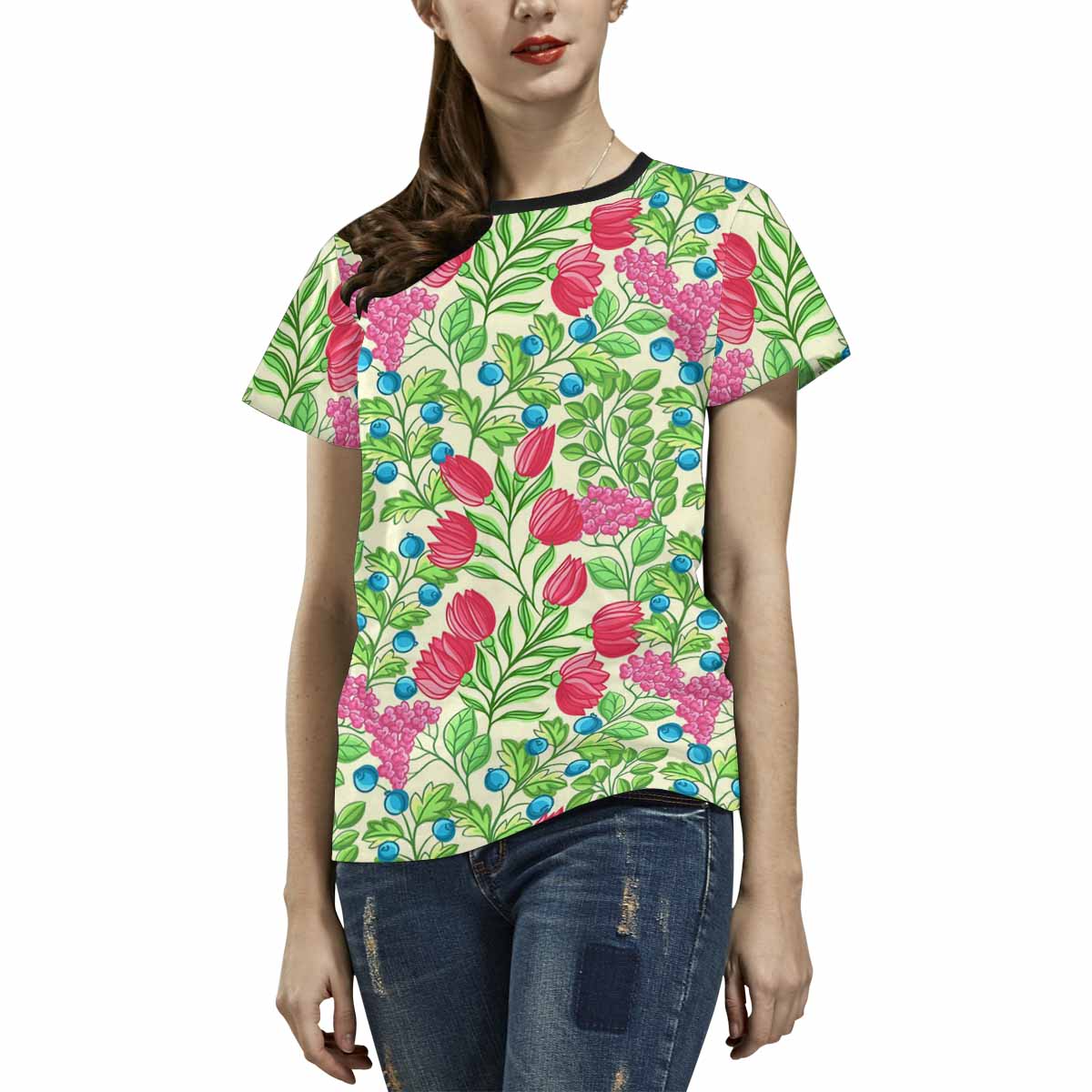 - 10.23 Oz. Polyester fabric. Dye-sublimation printing, Personalized all-over print T-shirt for women.