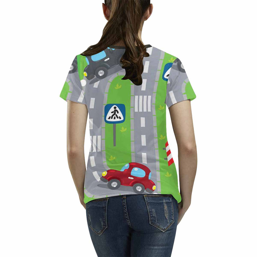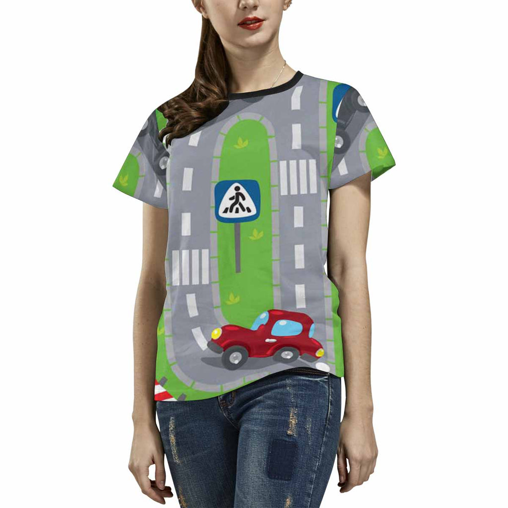 Womens graphic T-Shirts print with Road vertical pattern
