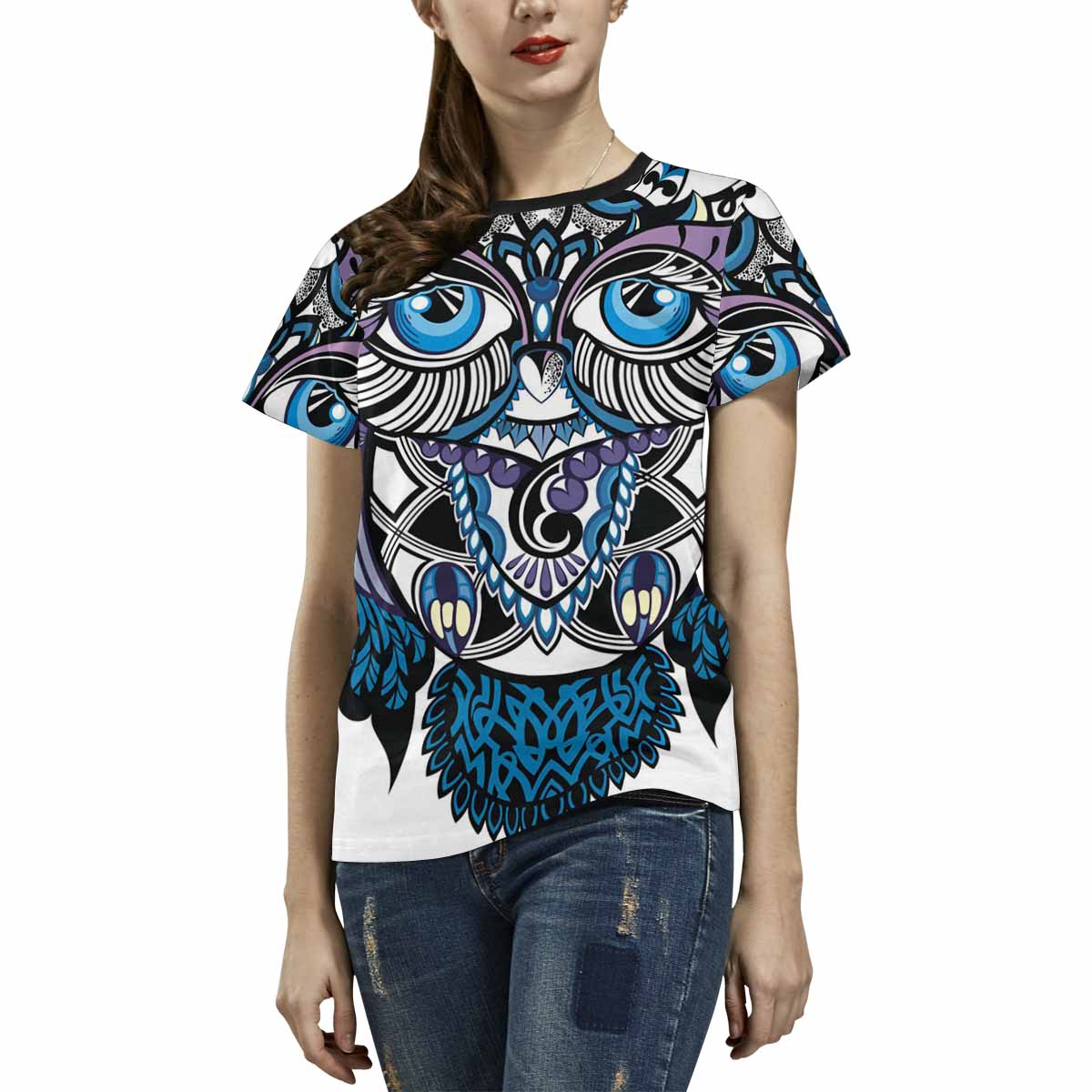 - 10.23 Oz. Polyester fabric. Dye-sublimation printing, Personalized all-over print T-shirt for women.
